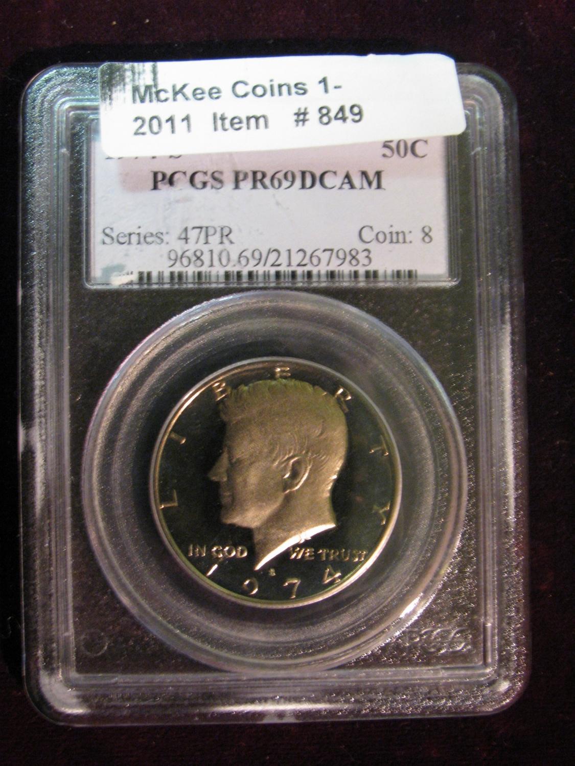 849. 1974 S Kennedy Half Dollar PCGS slabbed PR69DCAM