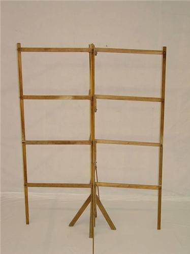85" PRIMITIVE WOODEN FOLDING DRYING RACK - IMPERFECTIONS;