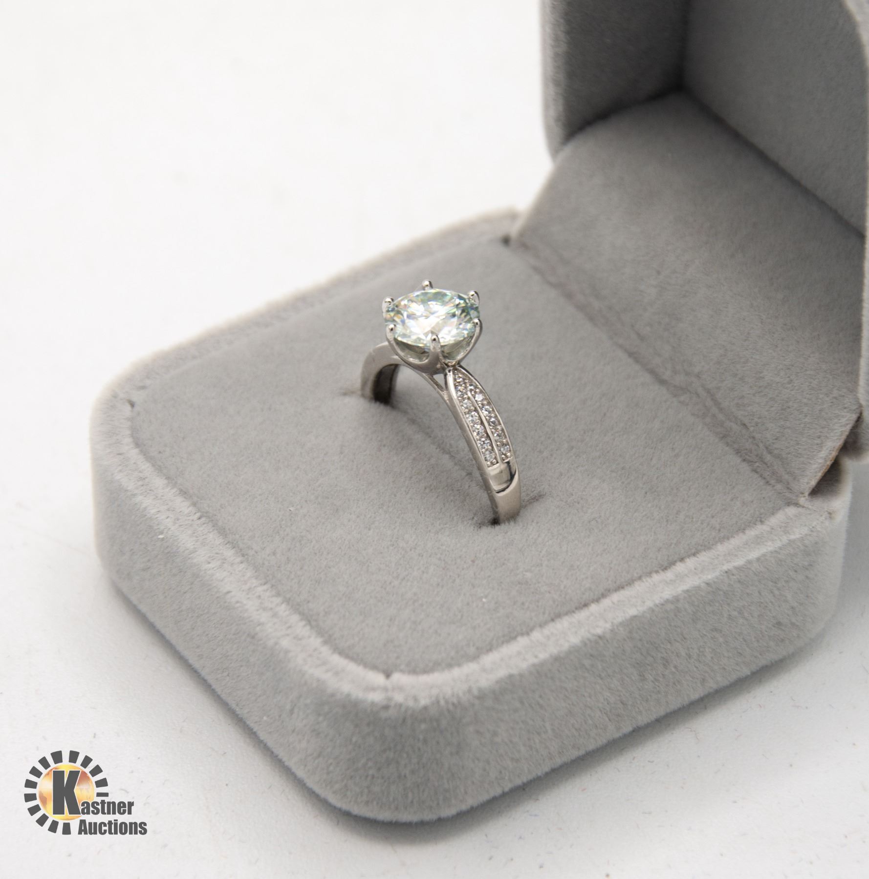 WITH 26 ROUND BRILLIANT CUT CUBIC ZIRCONIA WEIGHING A TOTAL 0.10 CT SET IN THE SHANK OF THE RING SET IN STERLING SILVER RETAIL VALUE $1,250.00