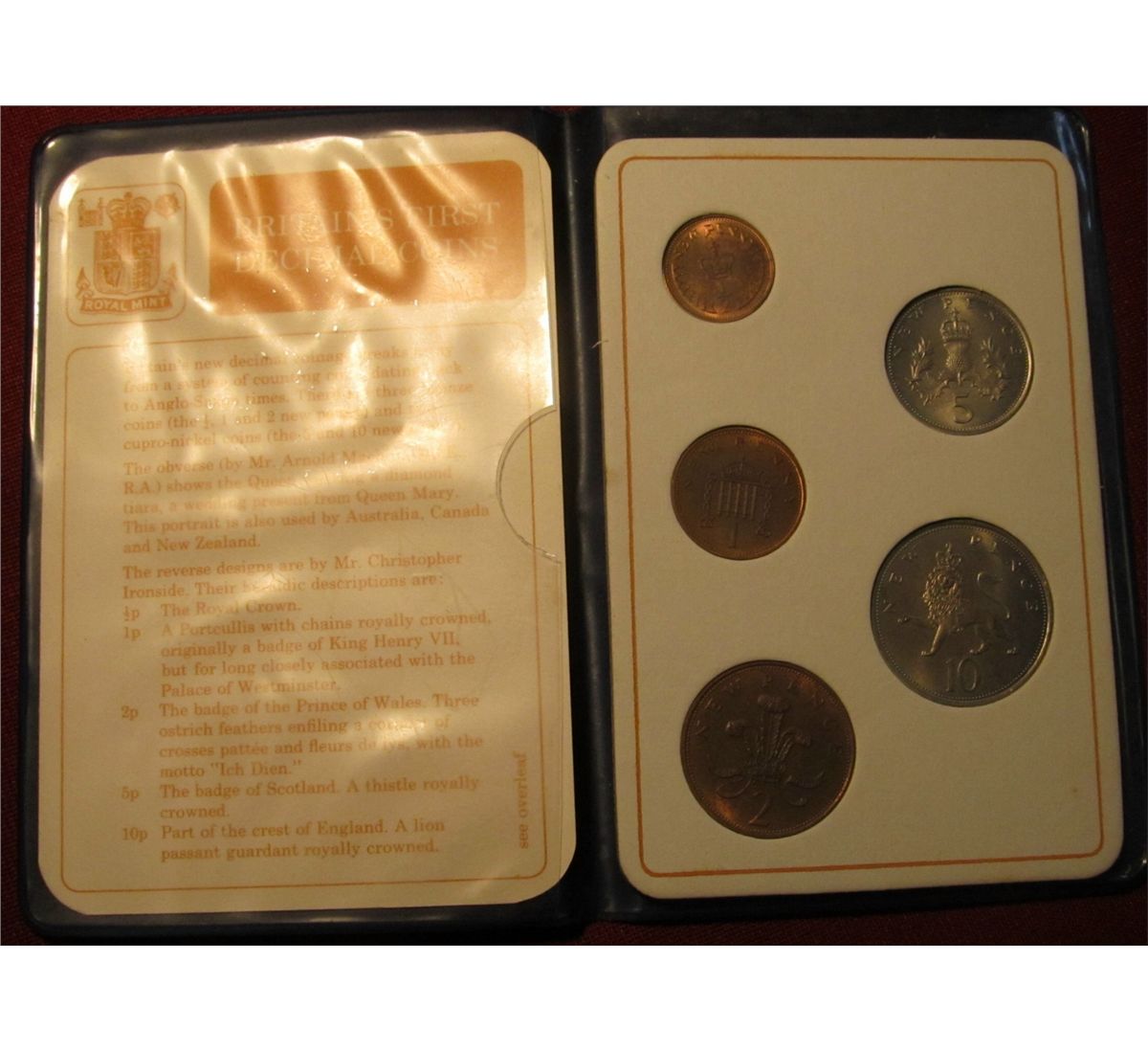 851. Britain’s First Decimal Coins, 5 coin set in a special presentation wallet