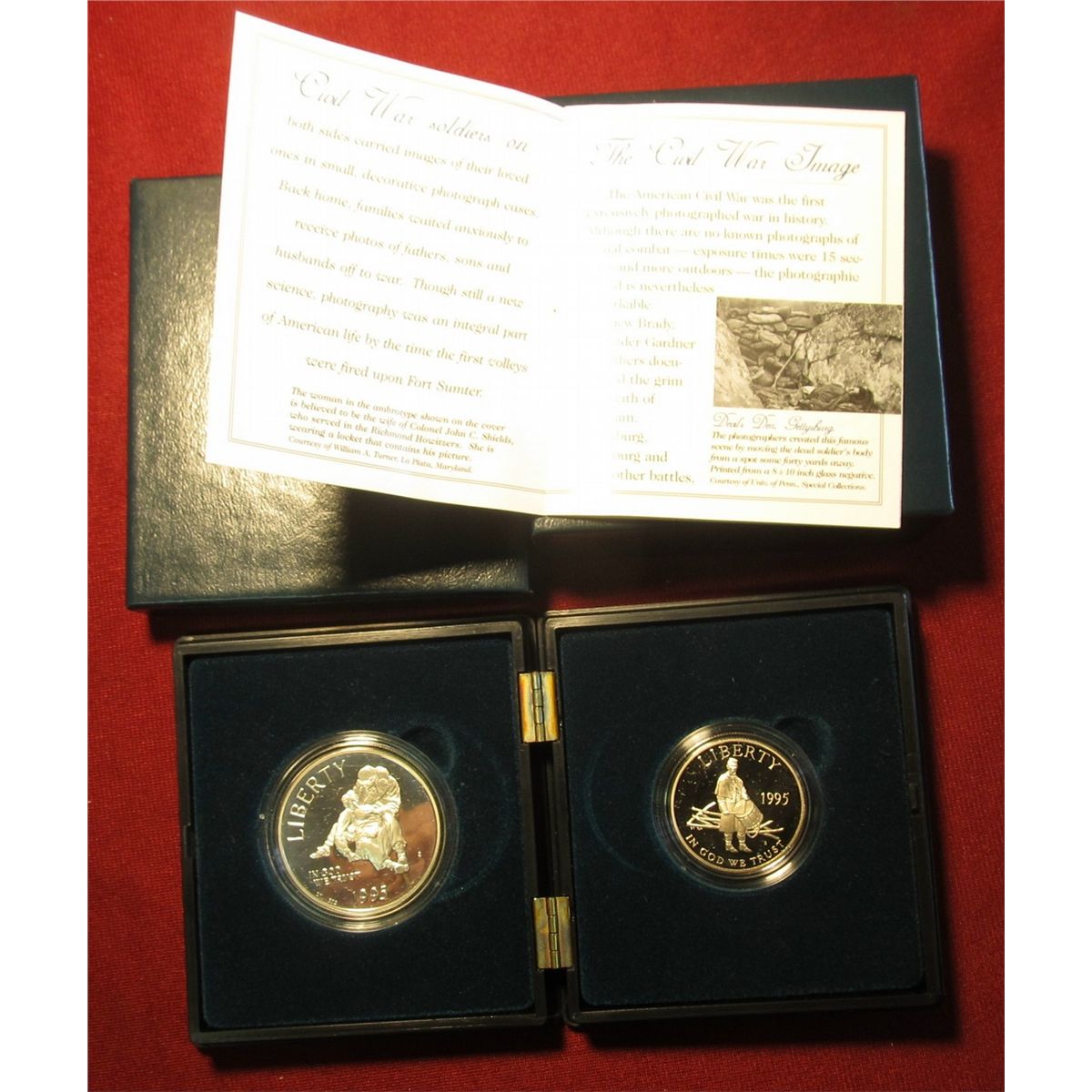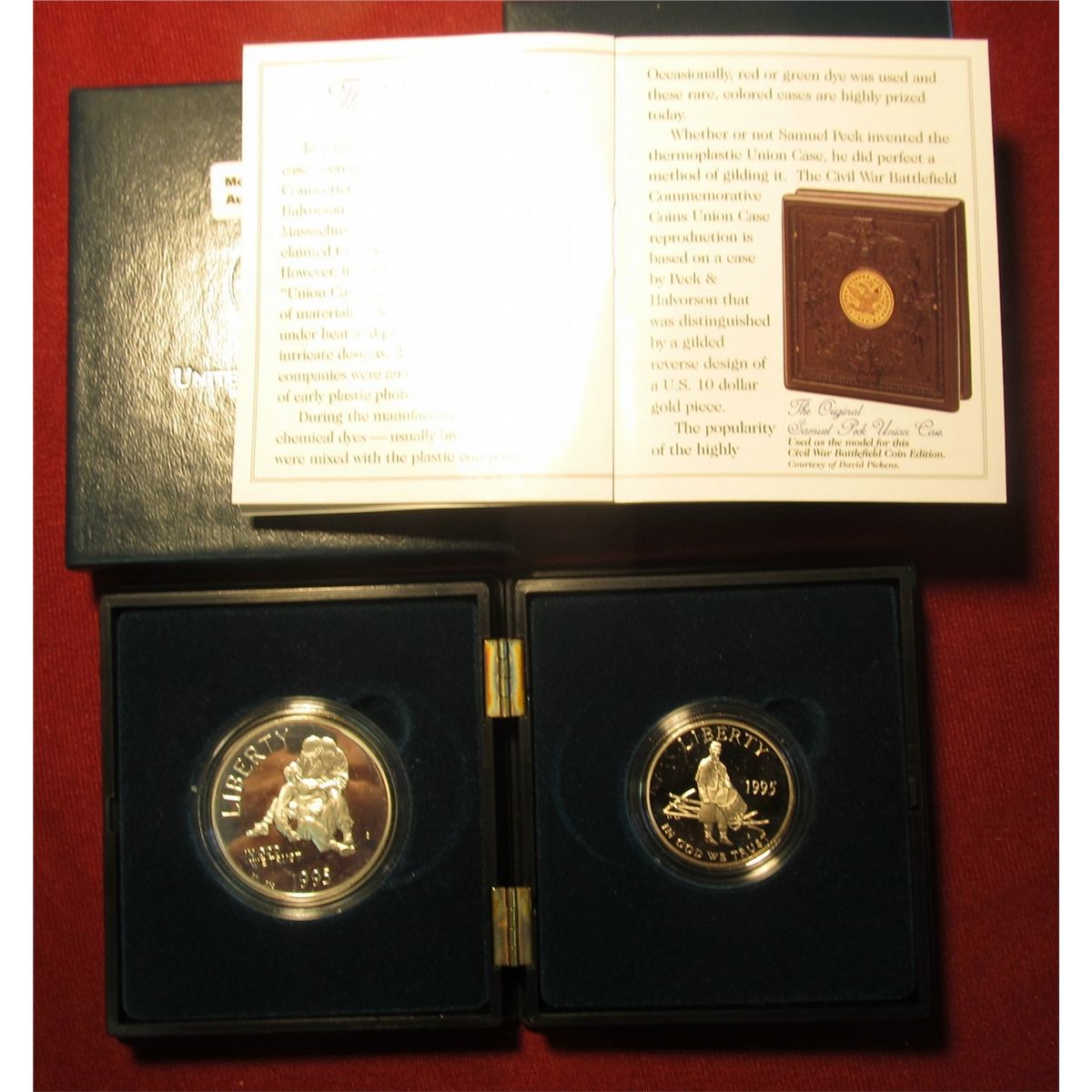 852. 1995 Civil War Battlefield Coins, Proof 2 coin Dollar and Half set in special case with photo C