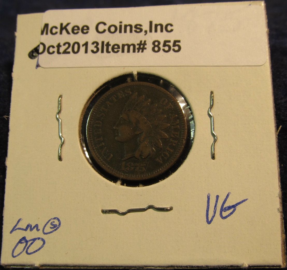 855. 1875 Indian Head Cent. VG-8. Redbook value $25.00.