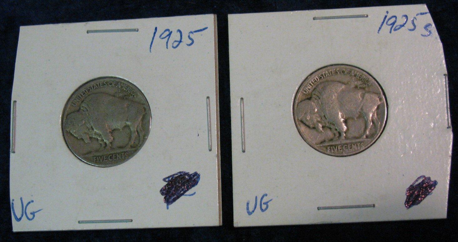 856. 1925P & 1925S Buffalo Nickels. VG.