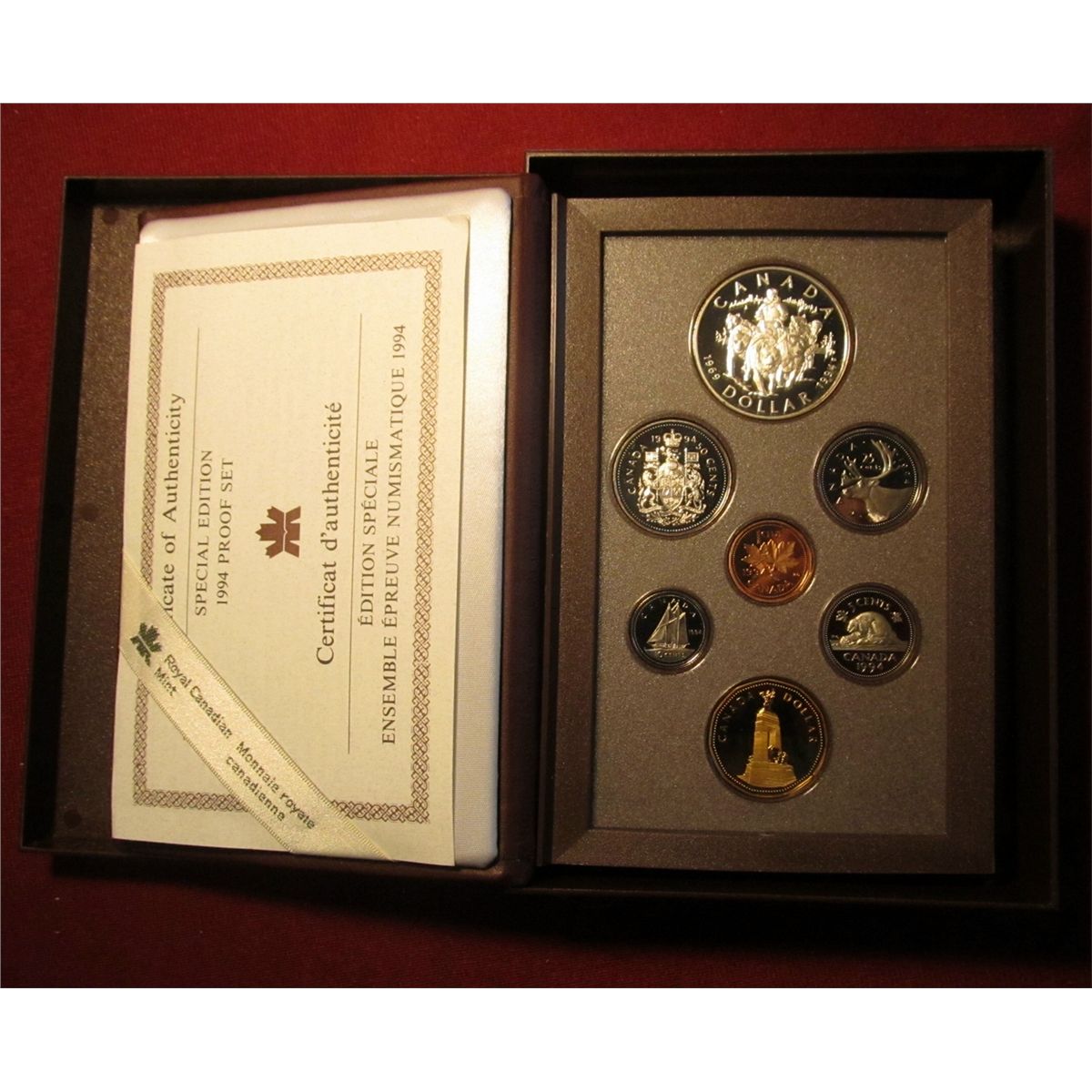 856. 1994 Canada Special Edition Proof set in original BU rgundy packaging, includes Silver RCMP Dog
