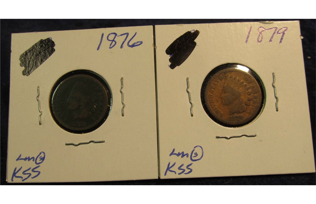 858. 1876 & 79 Indian Head Cents. G-4. Redbook value $43.00.