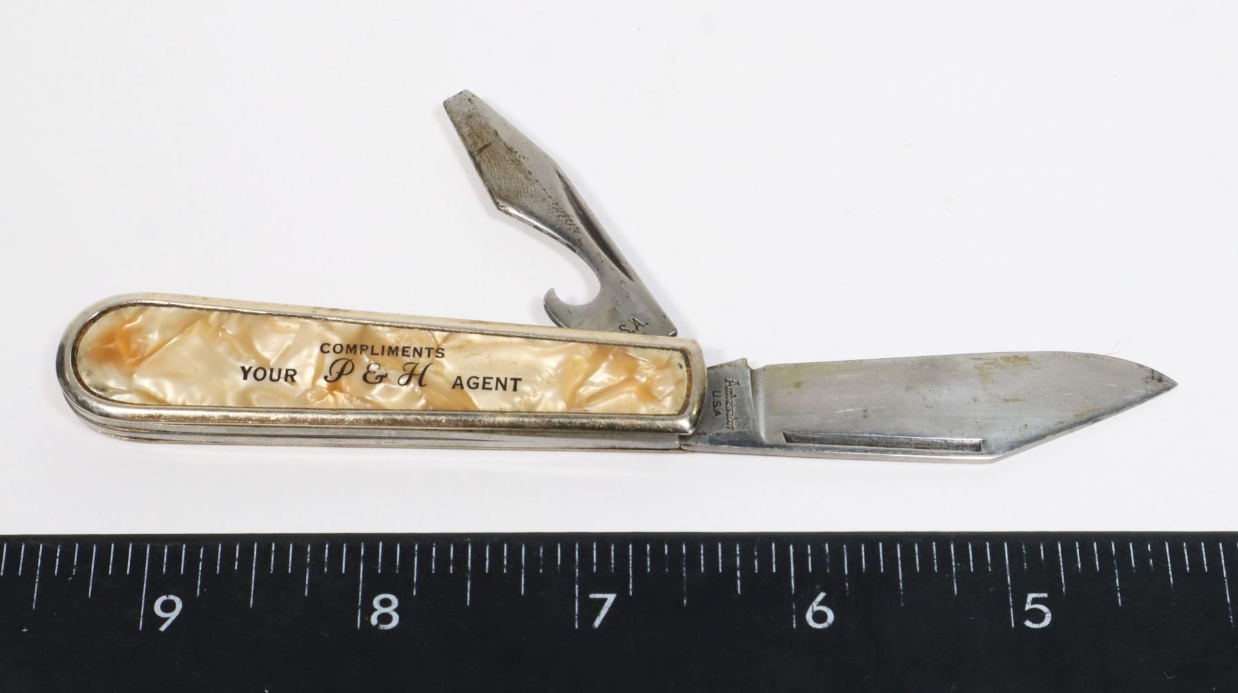 ADVERTISEMENT FOR P & H AGENT FARMING PARRISH & HEIMBECKER MID 20TH CENTURY POCKET KNIFE