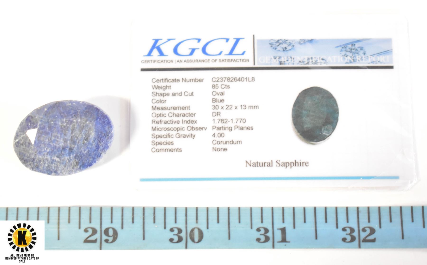 85CT BLUE SAPPHIRE GEMSTONE, COA