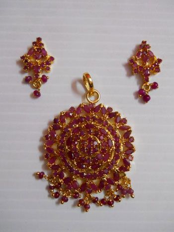 86.10 CTW GOLD PLATED RUBY PENDANT AND EARRING SET STER **|**|** 86.10 CTW GOLD PLATED RUBY PENDANT AND EARRING SET STERLLING SILVER ; MSRP: $875