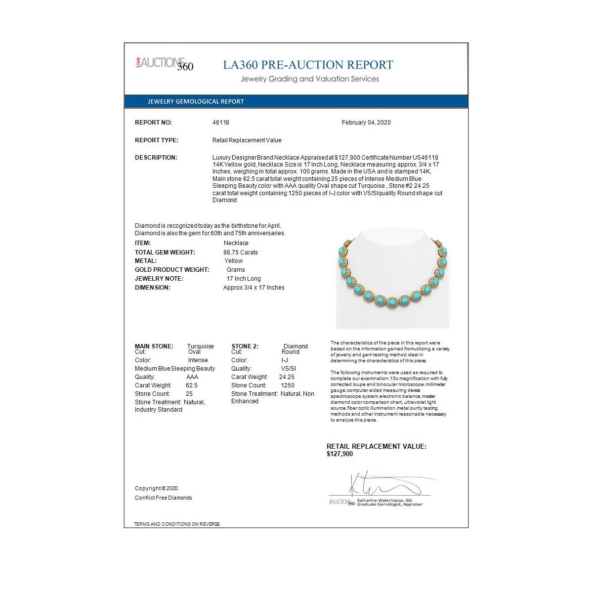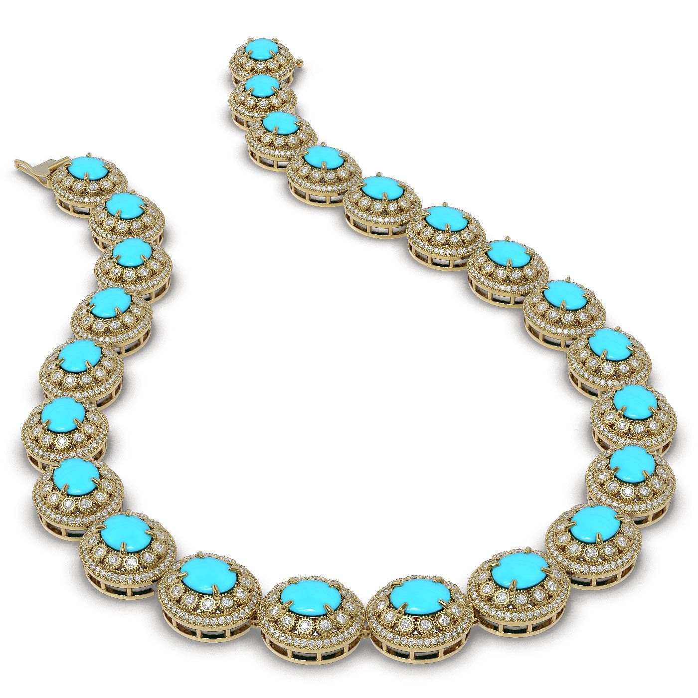 REF-2583N6F - SKU: 46118 ---- 86.75 ctw Turquoise & Diamond Victorian Necklace 14K Yellow Gold