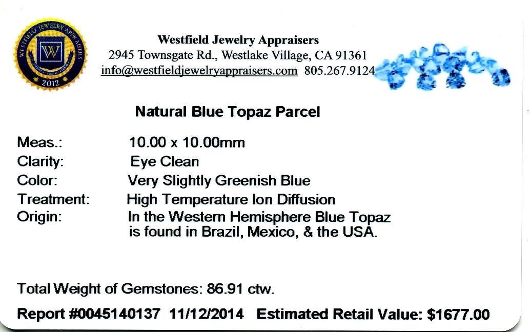 86.91cts Trillion Cut Natural Blue Topaz Parcel. Westfield Appraised at $1,677.00.