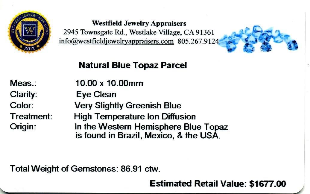 86.91cts Trillion Cut Natural Blue Topaz Parcel. Westfield Appraised at $1,677.00.