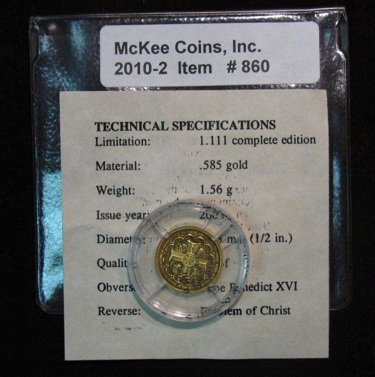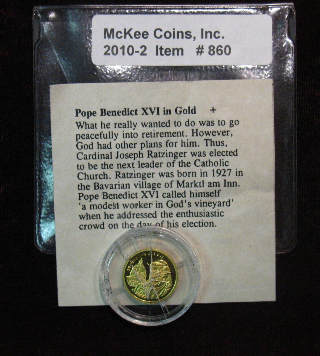 860. 2005 Pope Benedict XVI Gold Coin in Proof. ,858 Fine Gold.