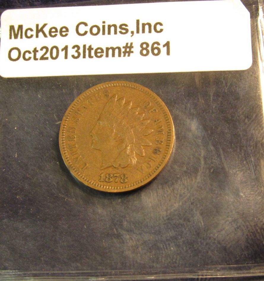 861. 1878 Indian Head Cent. VF 30. Redbook value $110.00.
