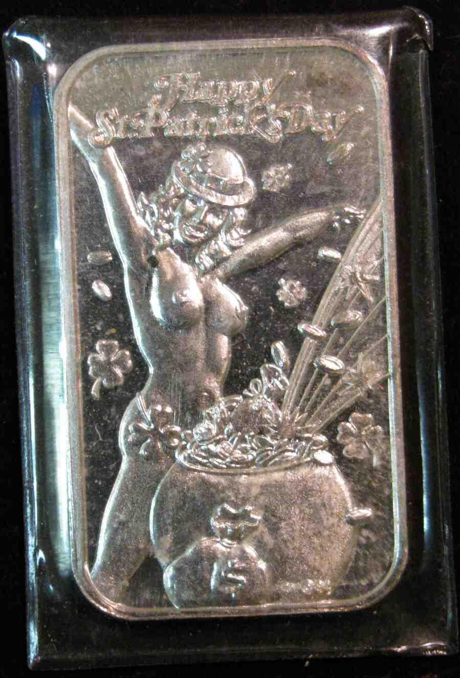 867. Happy St. Patricks Day Nude Collectors 1-Ounce Silver Bar. Limited Edition.
