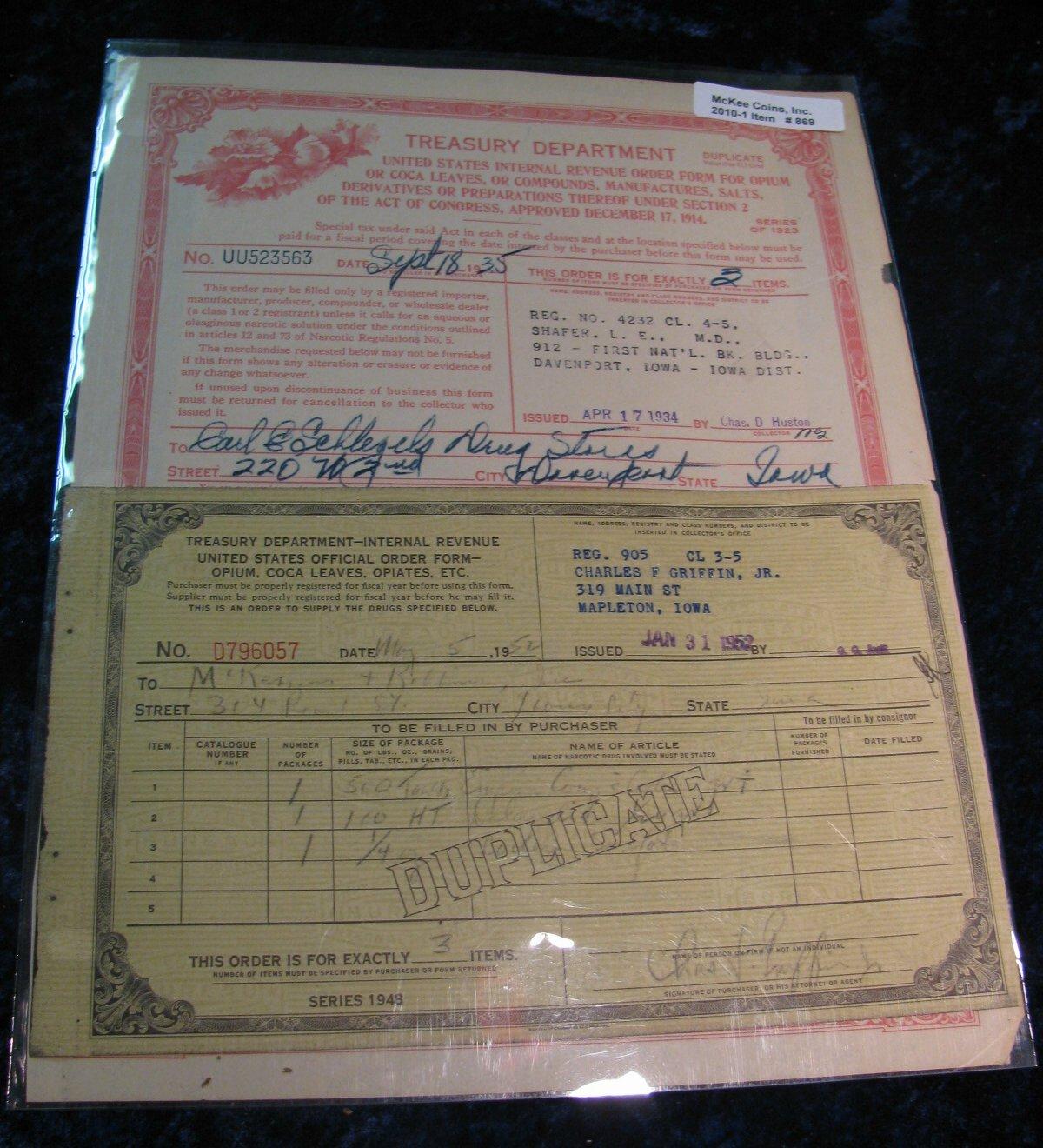 869. (3) Diffrerent Treasury Dept. Order For Opium, Coca Leaves Ect.