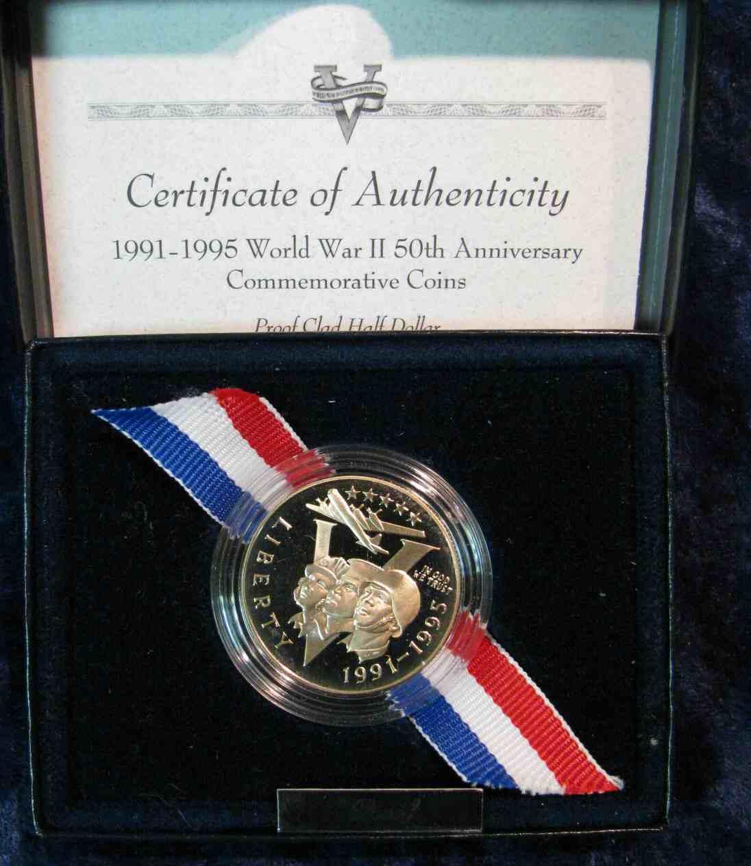 87. 1991-1995P WWII 50th Anniversary Commemorative Half Dollar. Proof.