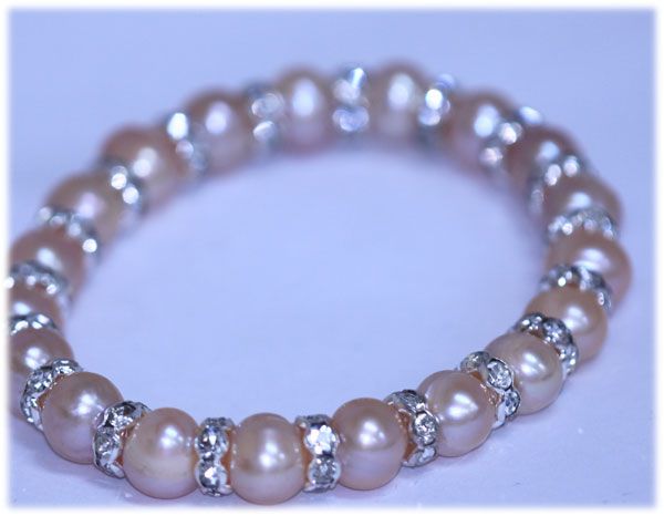 87.35 CTW PEACH PEARL AND CZ BRACELET **|**|** 87.35 CTW PEACH PEARL AND CZ BRACELET ; MSRP: $100