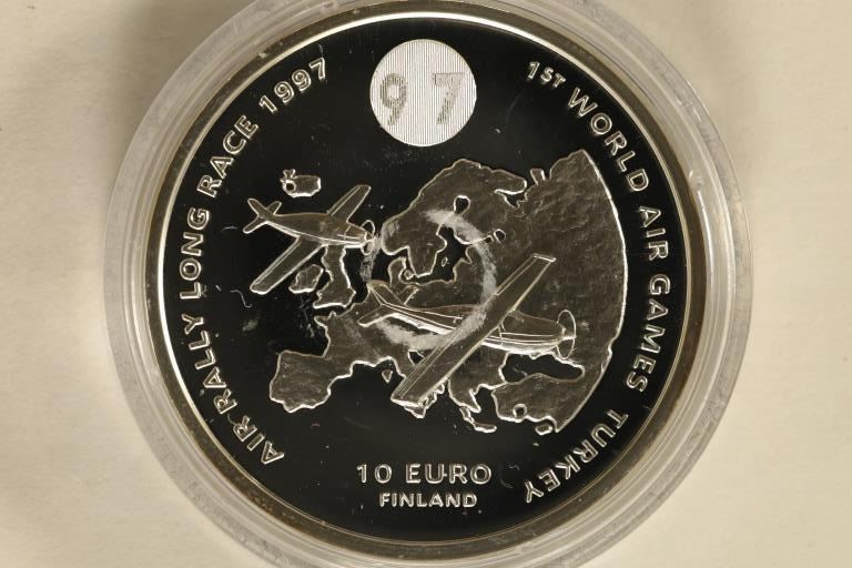 GAMES, TURKEY" 10 EURO FINLAND. 1997 AIR RALLY LONG RACE. IN HARD PLASTIC CAPSULE
