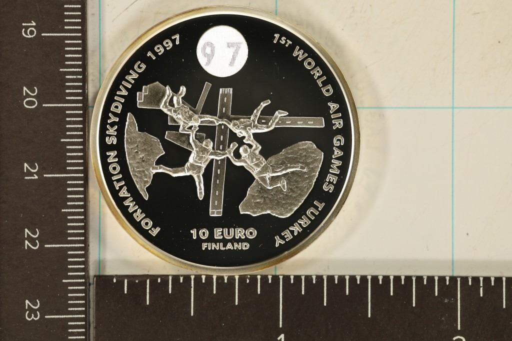 "GAMES, TURKEY"" 10 EURO FINLAND. 1997 FORMATION SKY DIVING. IN HARD PLASTIC CAPSULE "