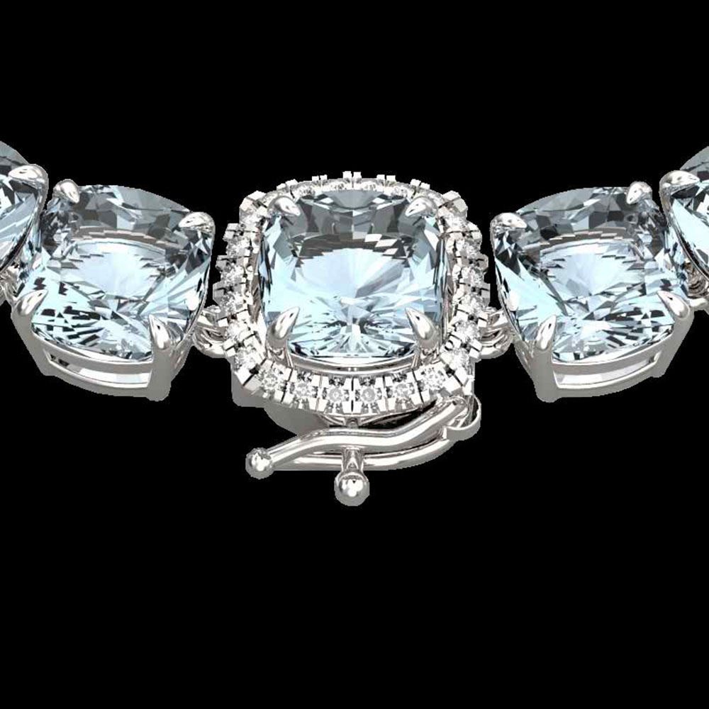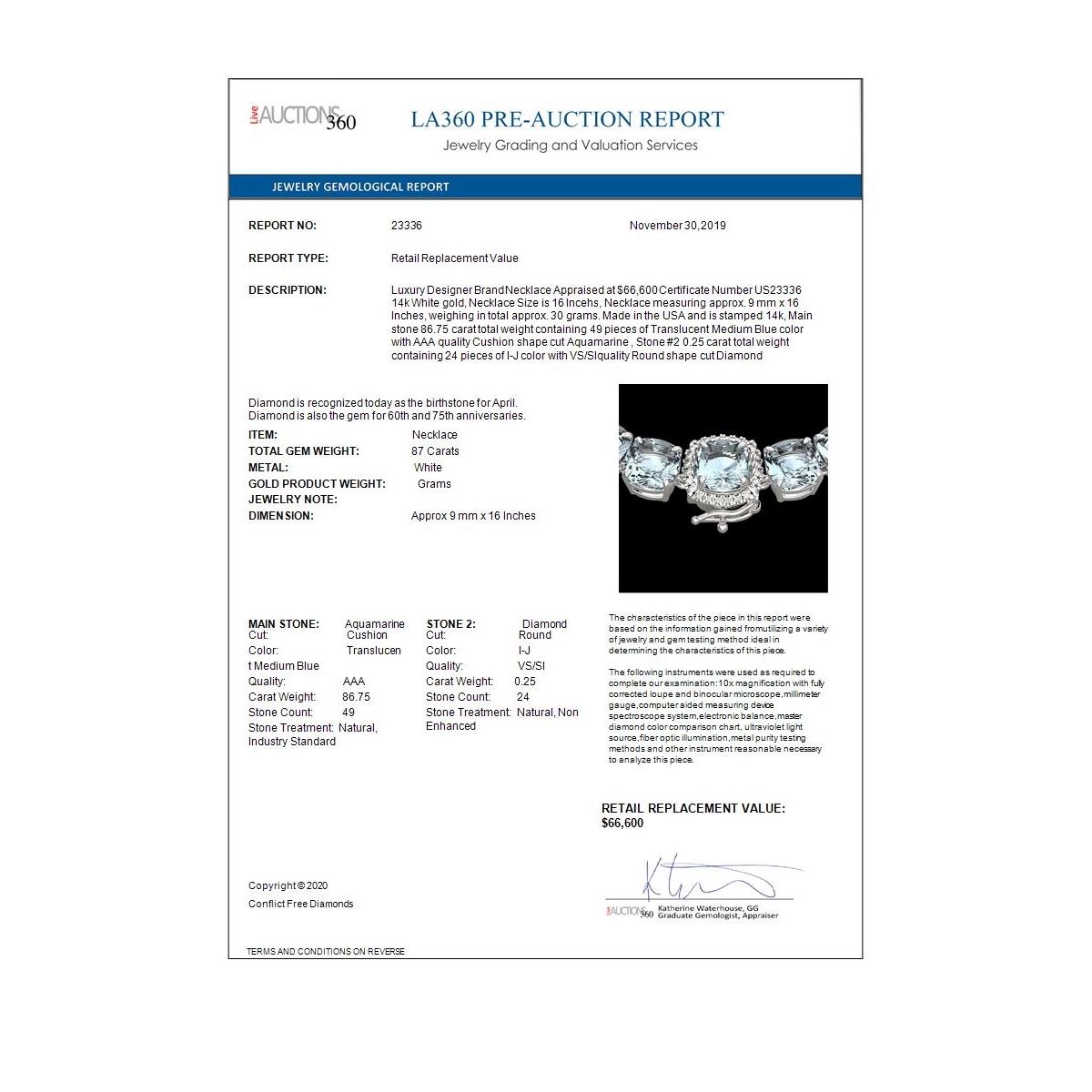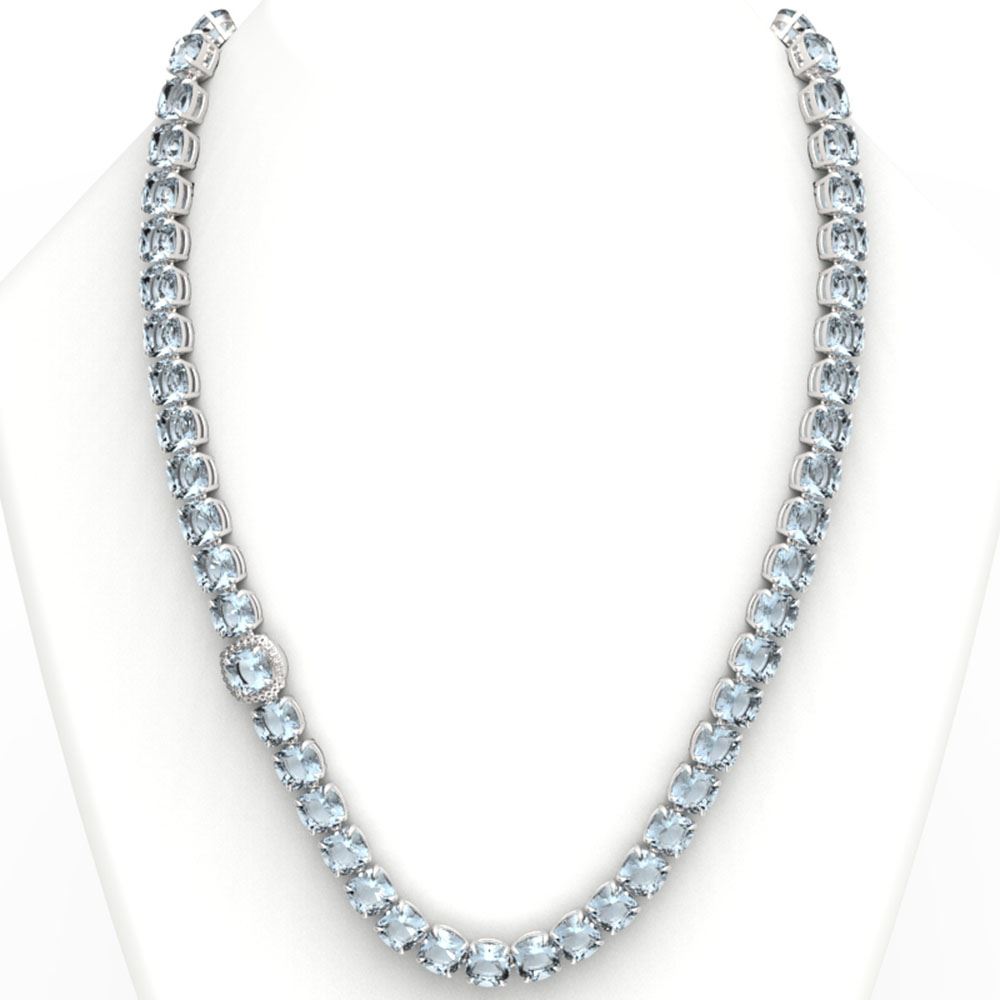 REF-1345H5R - SKU: 23336 ---- 87 ctw Aquamarine & Diamond Micro Eternity Necklace 14k White Gold