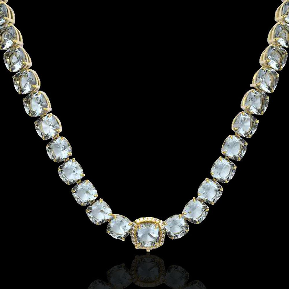 REF-1345M5G - SKU: 23338 ---- 87 ctw Aquamarine & Diamond Micro Necklace 14k Yellow Gold