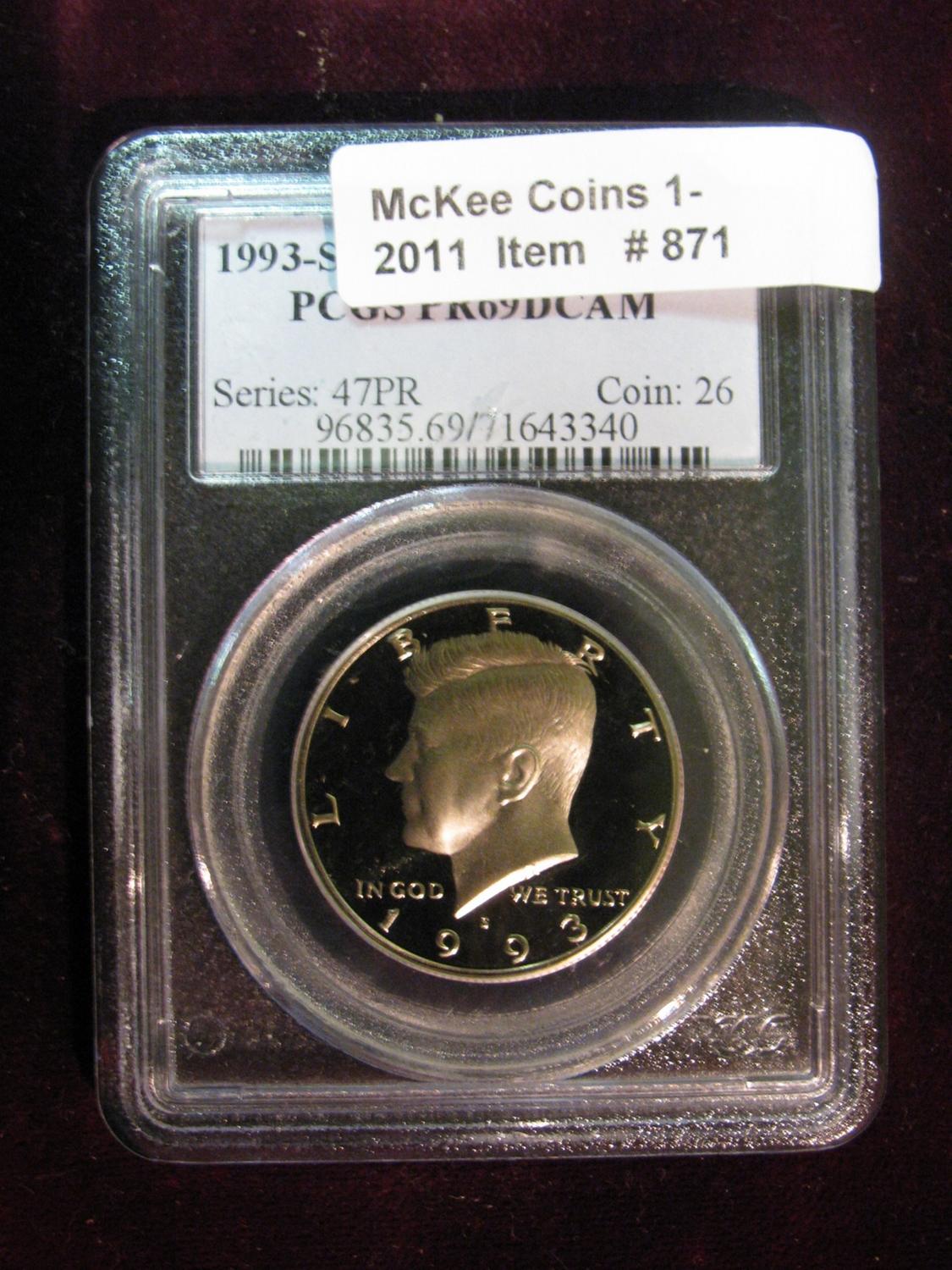 871. 1993 S Kennedy Half Dollar PCGS slabbed PR69DCAM
