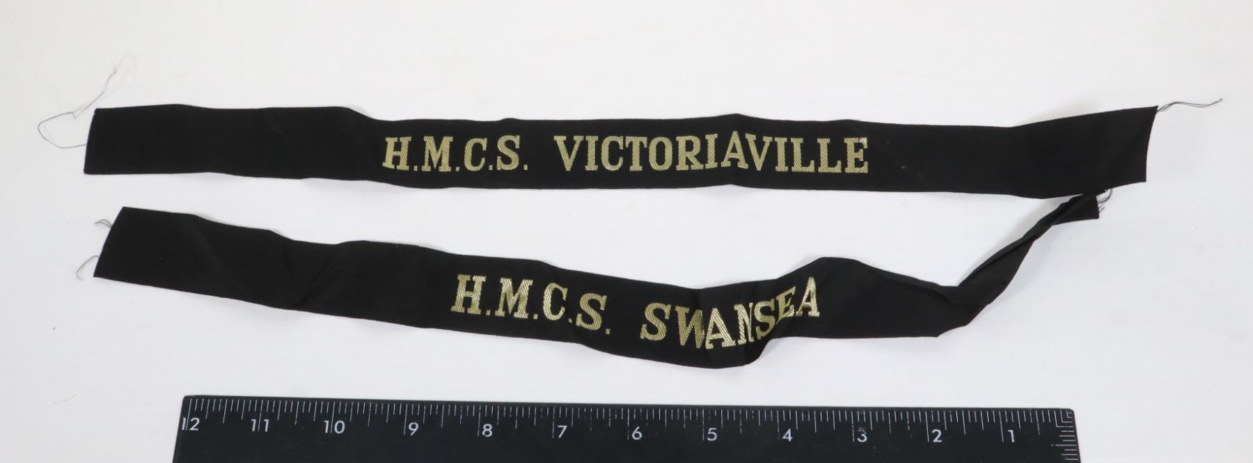 LOT OF 2 COLD WAR ERA NAVY CAP TALLY CANADIAN ALLIED FORCES ROYAL CANADIAN NAVY