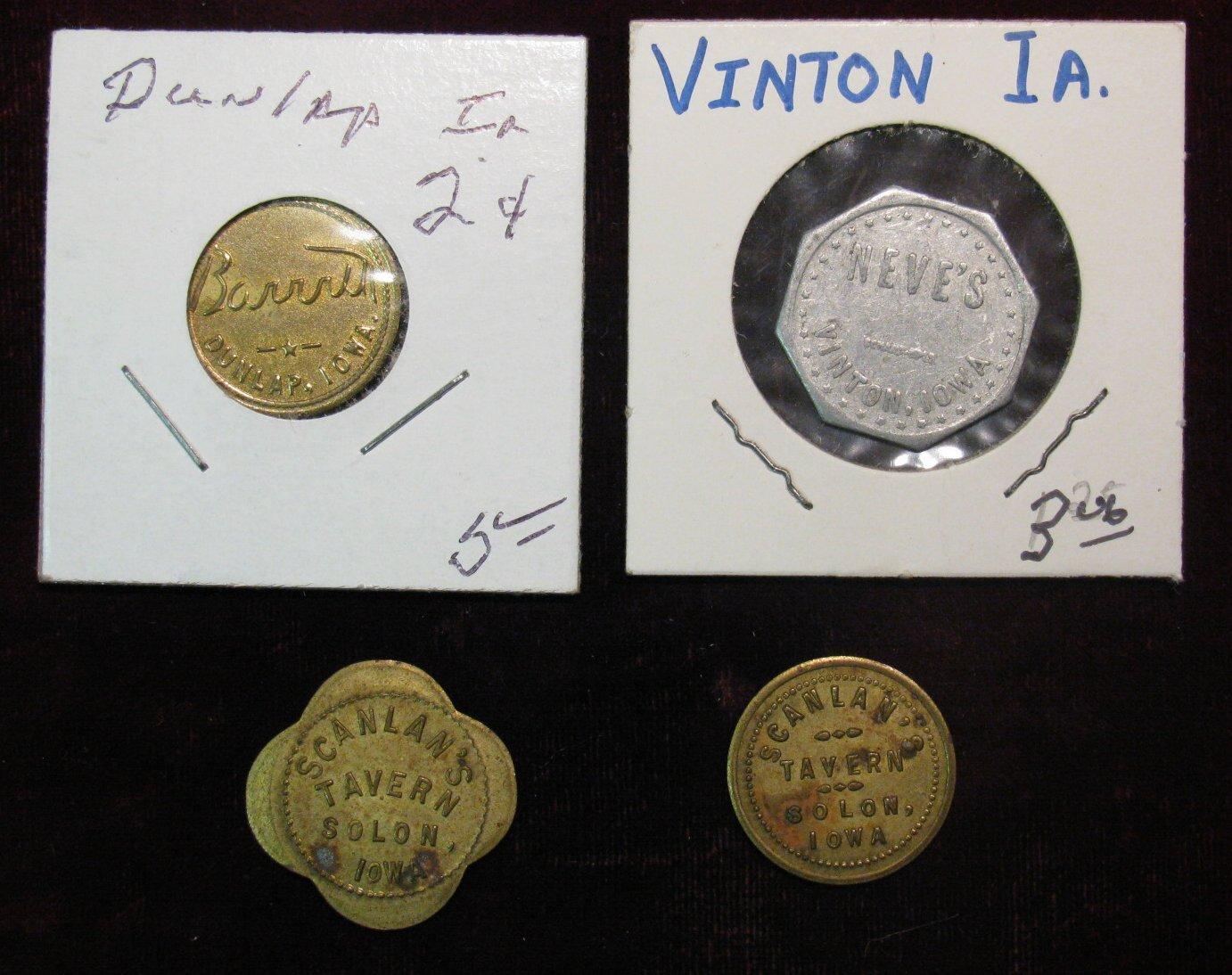 873. (4) Iowa Trade Tokens, (2) Solon, Vinton & Dunlop.