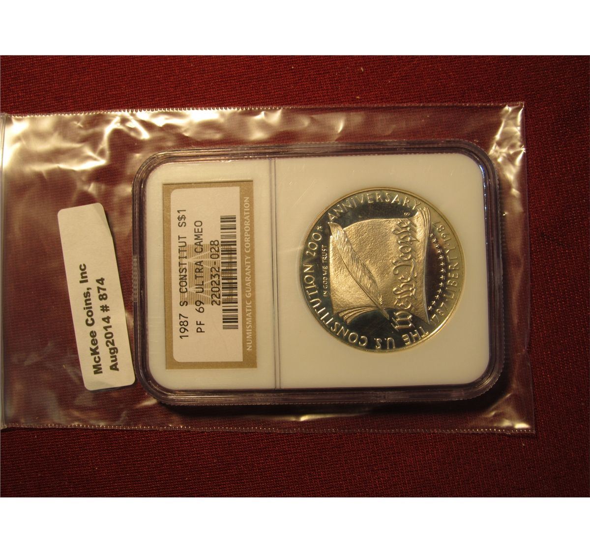 874. 1987-S Proof Constitution commemorative Silver Dollar, graded PF69 Ultra Cameo by NGC, great for a registry set