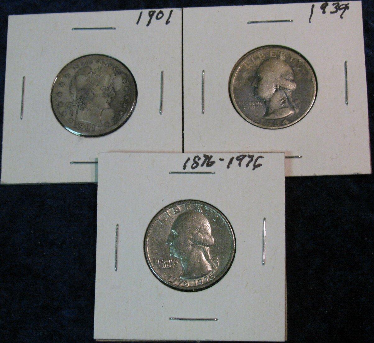 875. 1901P G, 34P G & 1976 Unc Quarters.