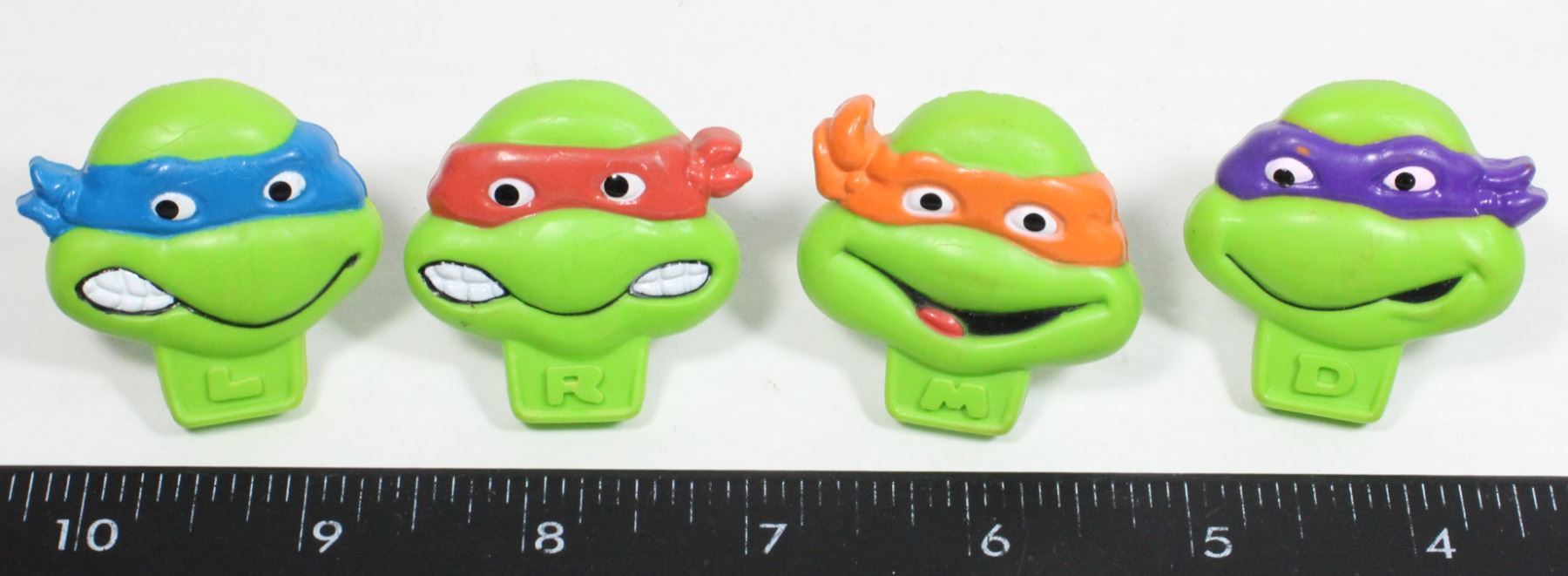 COMPLETE 4 TURTLES DONATELLO MICHAELANGELO RAPHAEL LEONARDO 1990 MIRAGE STUDIOS TMNT TEENAGE MUTANT NINJA TURTLES VINTAGE CEREAL TOY RING NABISCO SHREDDIES LOT OF 4