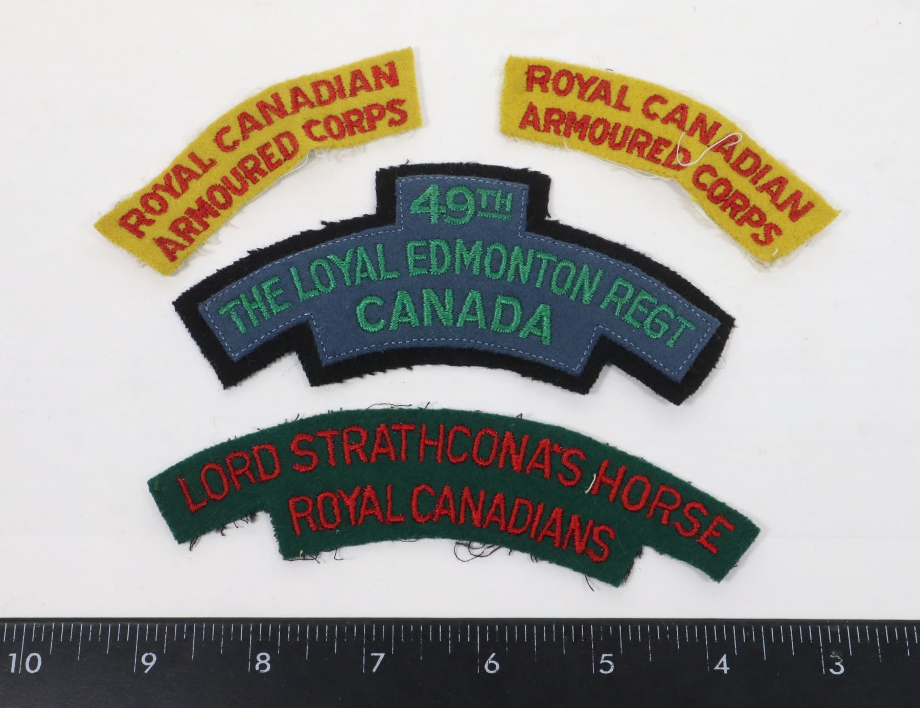 CLOTH TITLE INCLUDING ROYAL CANADIAN ARMOURED CORPS PAIR LORD STRATHCONA'S HORSE ROYAL CANADIANS
