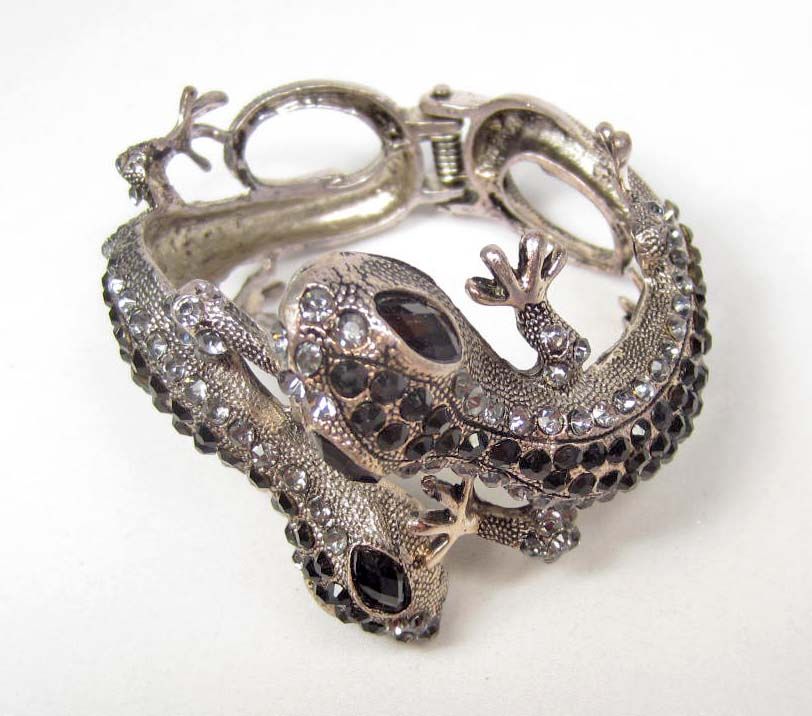 8820 - SWAROVSKI CRYSTAL DOUBLE GECKO CUFF BRACELET