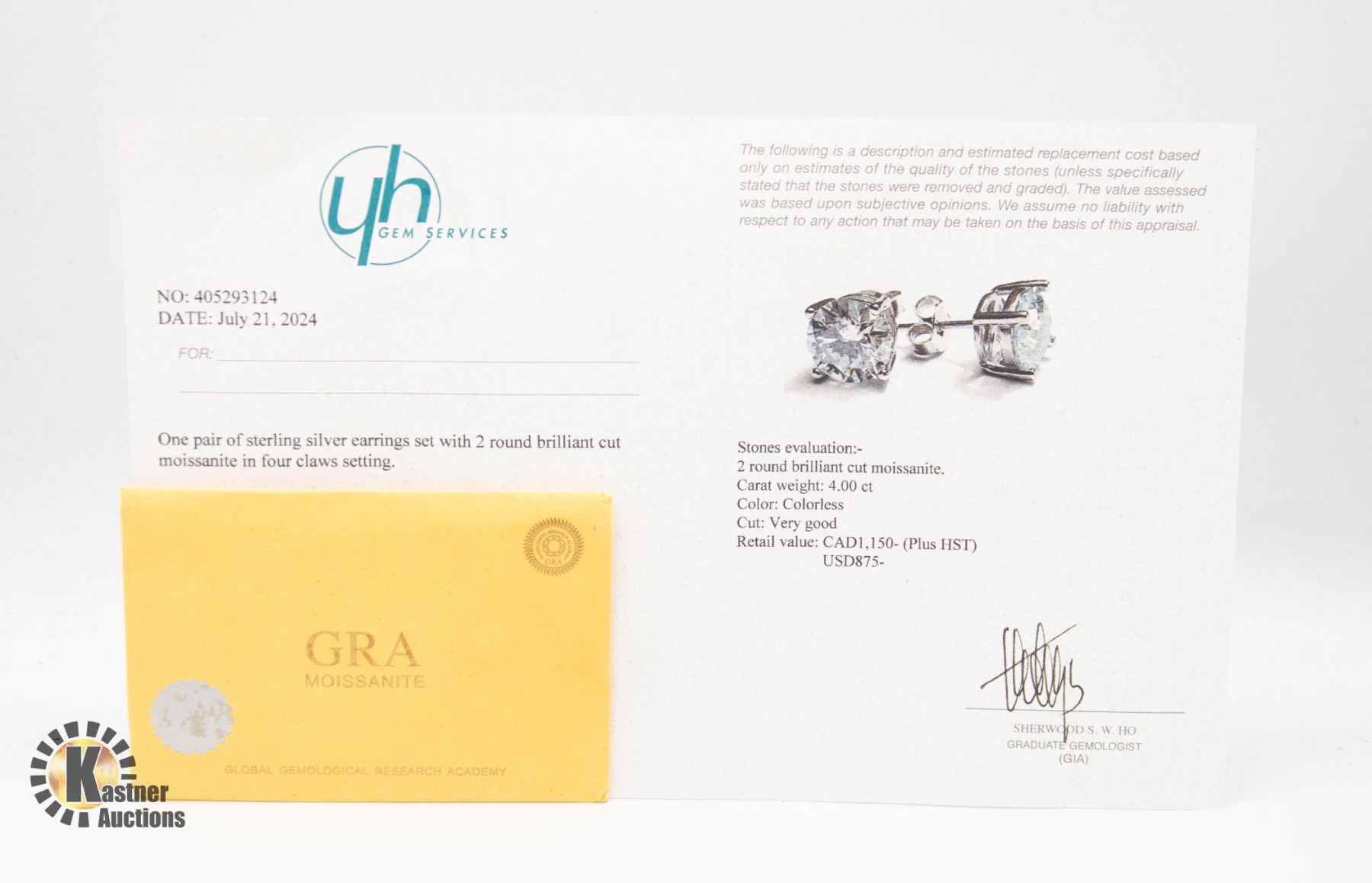 BRILLIANT CUT MOISSANITE STONES VVS D COLOR SET IN 925 SILVER EARRINGS WITH RETAIL VALUE $1,150.00 **ALL ITEMS MUST BE REMOVED BY 5PM SATURDAY, SEPTEMBER 2ND 2024. ALL REMAINING ITEMS WILL BE SUBJECT TO A $6.00 PER DAY STORAGE CHARGE. ANY ITEMS REMAINING AFTER MONDAY, NOVEMBER 18TH 2024 WILL BE CONSIDERED FORFEITED. NO REFUNDS WILL BE ISSUED FOR FORFEITED ITEMS. TO SCHEDULE A PICK UP APPOINTMENT CLICK HERE