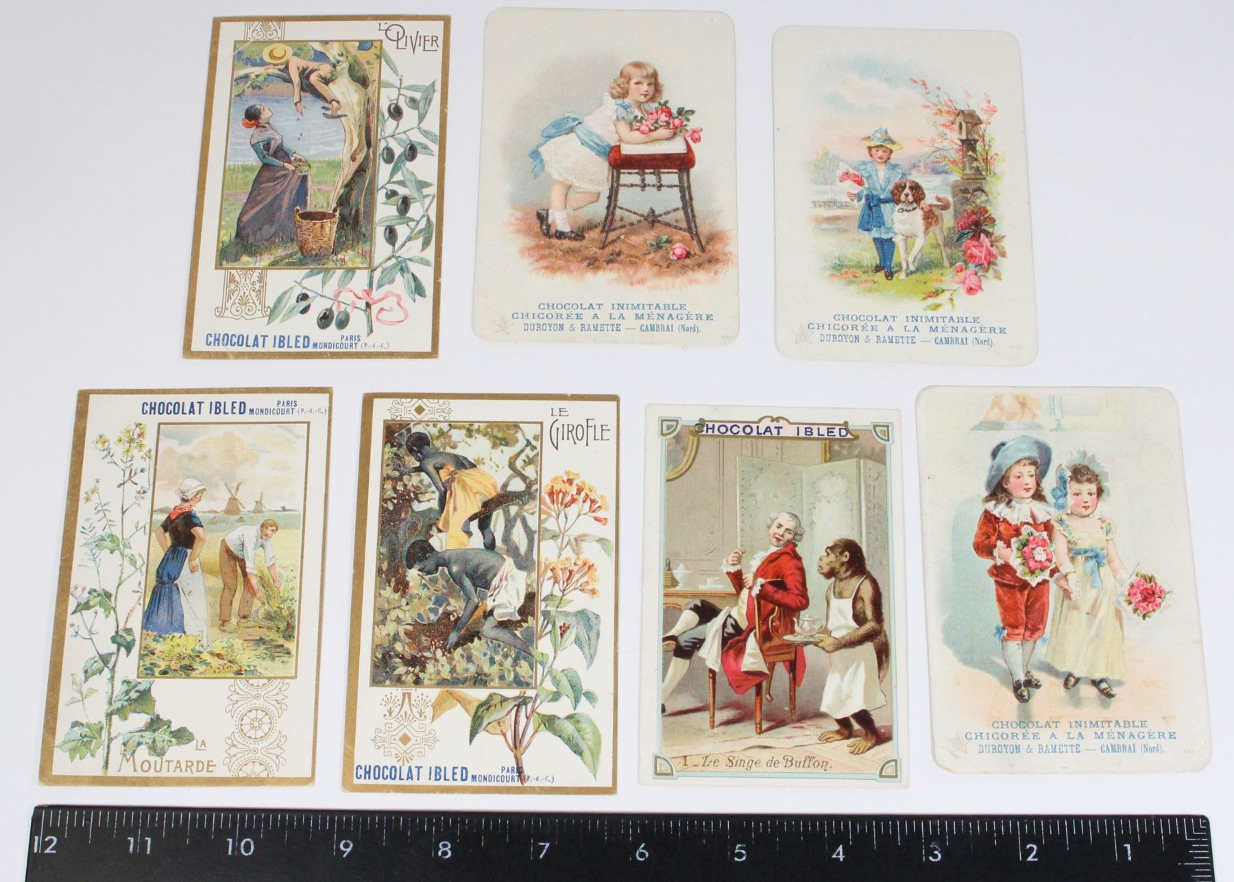 LATE 1800'S 19TH CENTURY ADVERTSING CHOCOLATE CARDS PARIS AND CAMBRAI LOT OF 7
