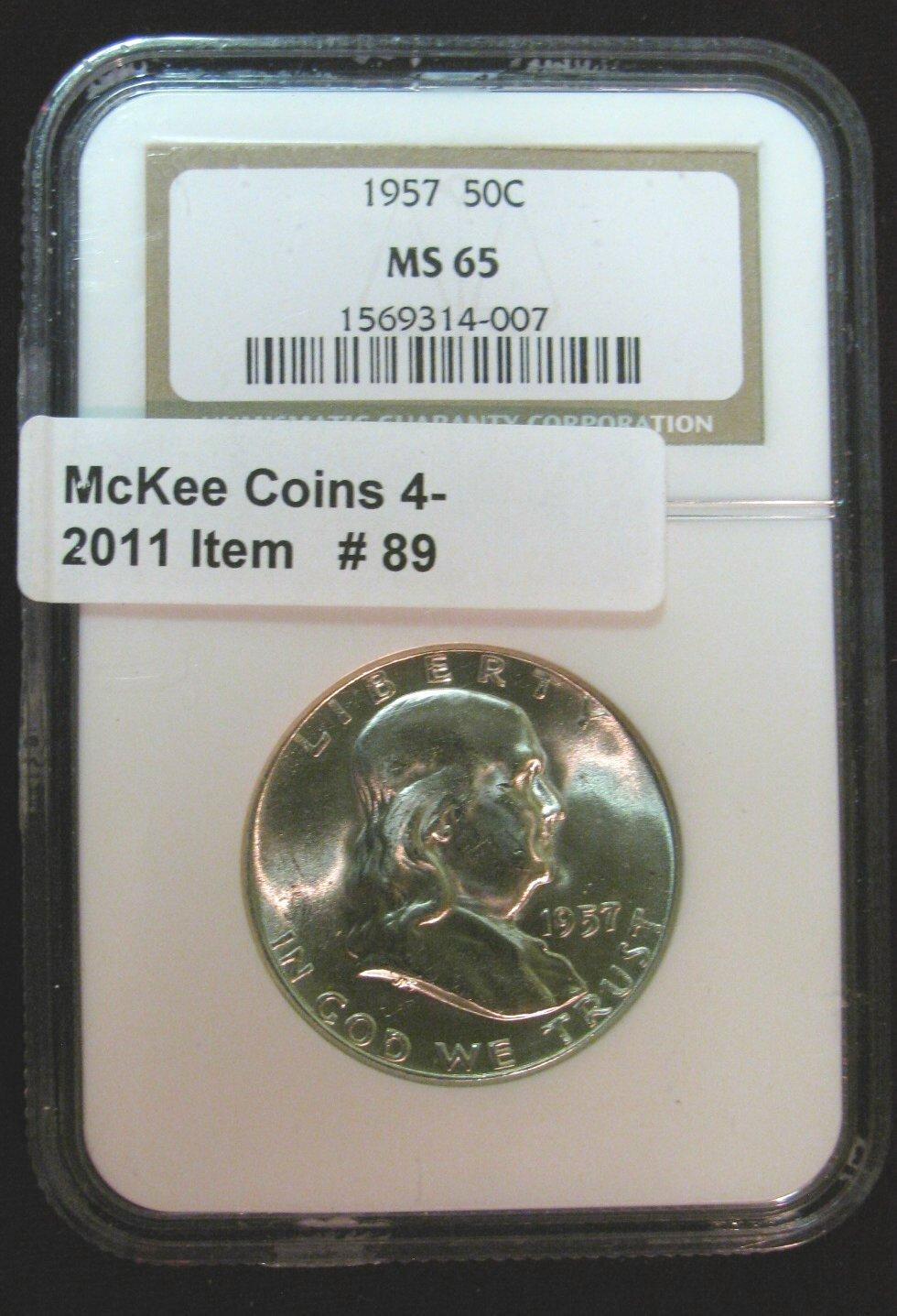 89. 1957 P Franklin Half Dollar. NGC slabbed MS 65.