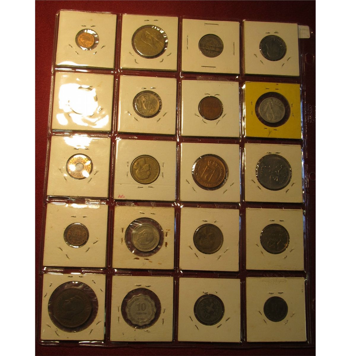 89. (20) Various Foreign Coins from countries such as Italy, Panama, Brazil, France, Israel & etc. In a plastic page.