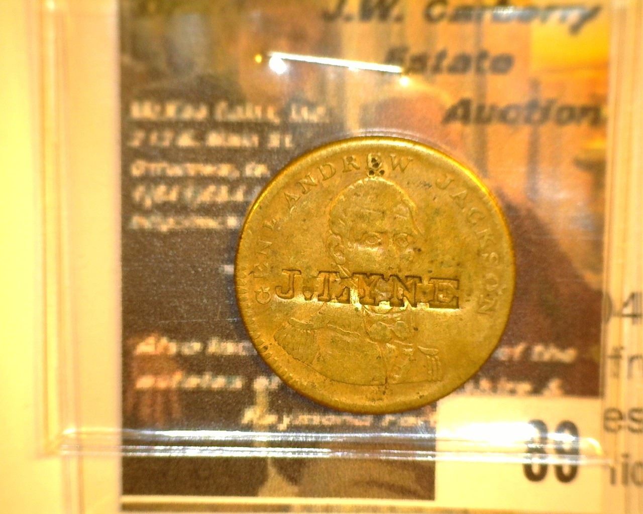 89. Genl. Andrew Jackson Campaign token with "J.LYNE' countermark, Harrisburg, Pa. According to C