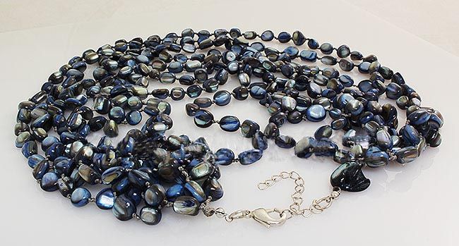 18 Inches Blue Dyed Color Beads Mother of Pearl Necklace with Metal Lobster Lock