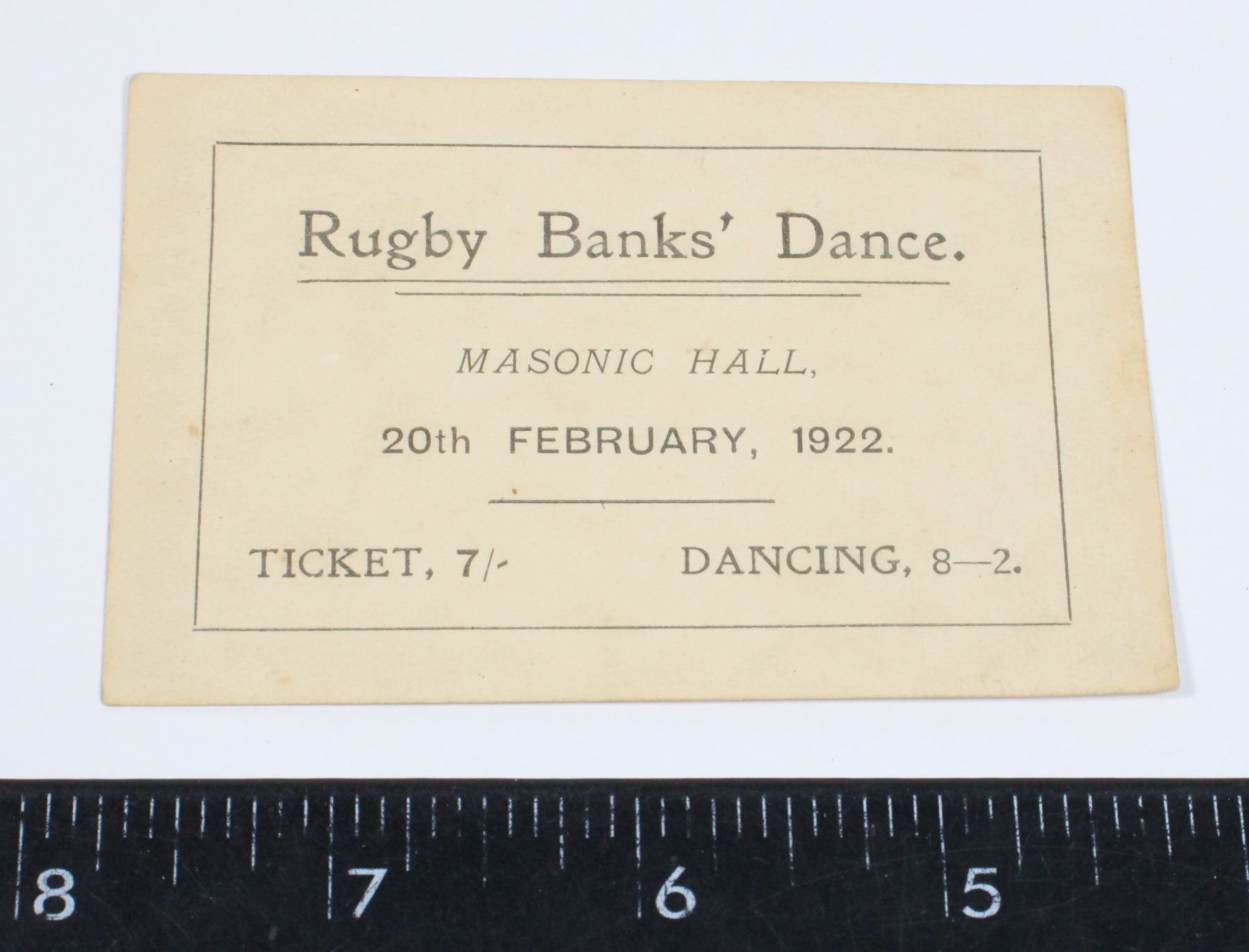 RUBY BANKS' 1922 20TH FEBRUARY 1922 TICKET EPHEMERA