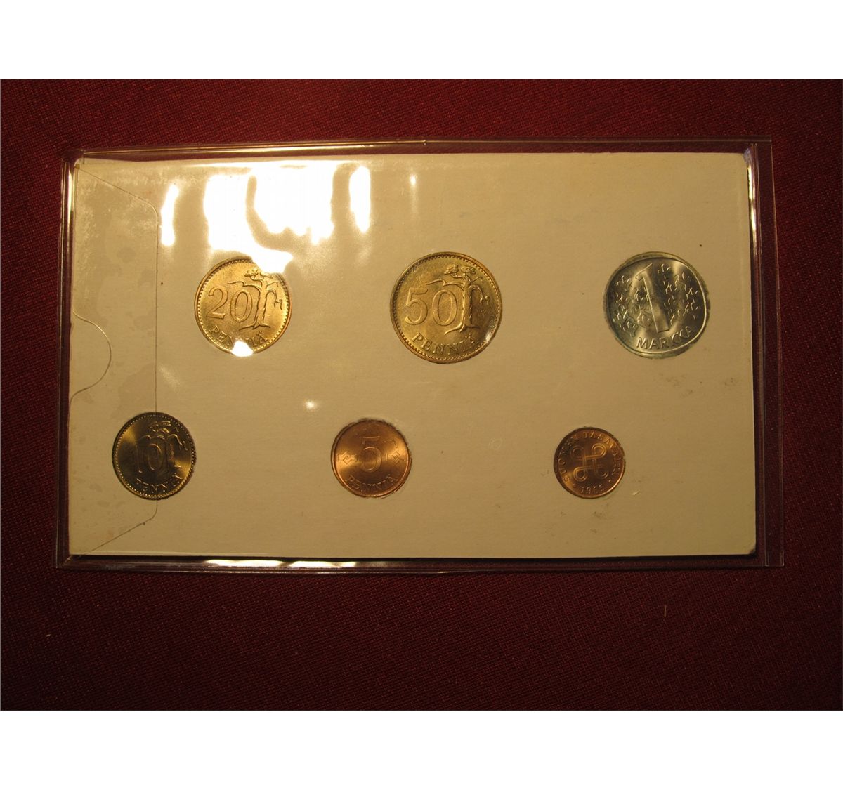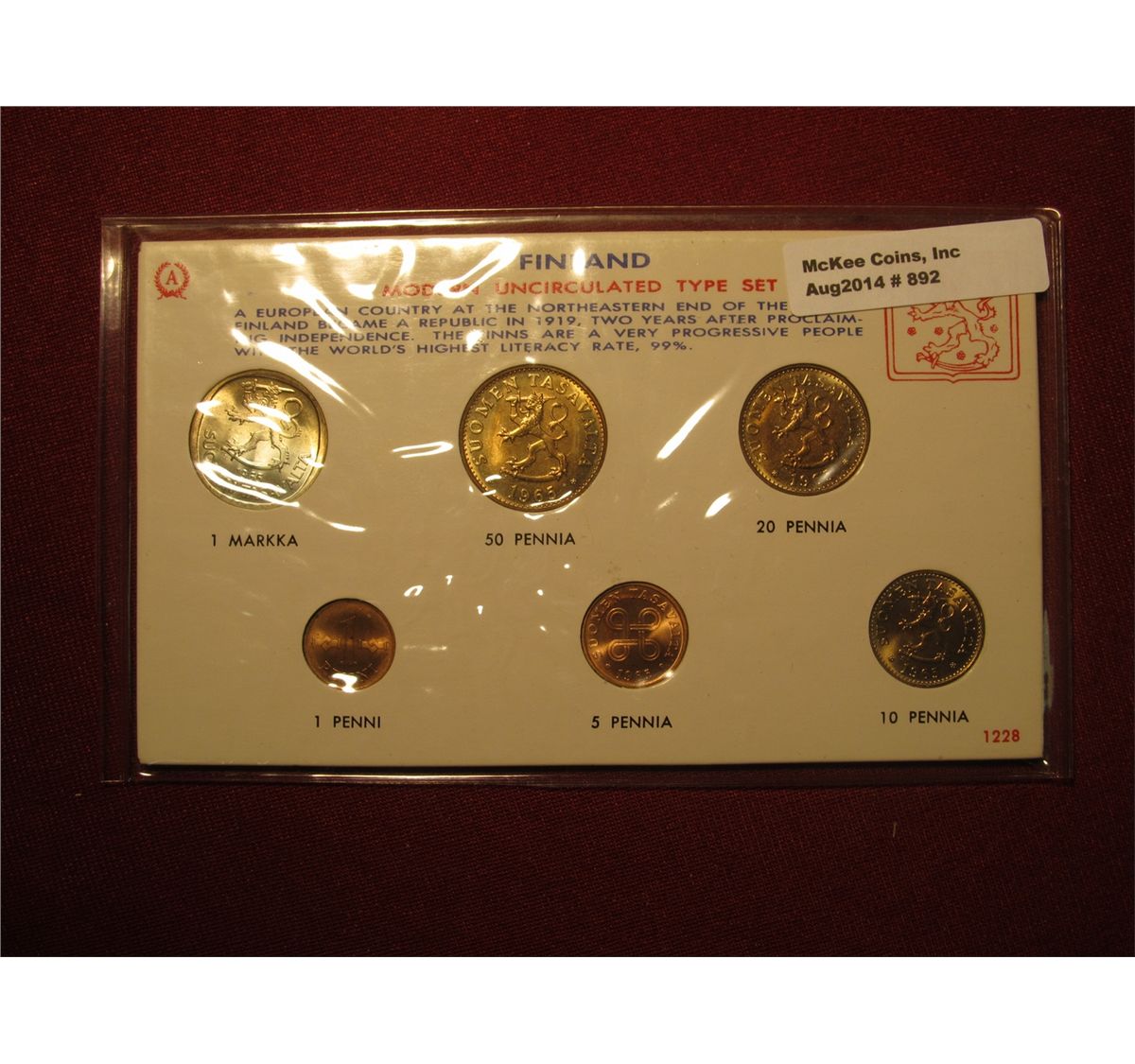 892. Finland Modern Uncirculated Type Set, 6 coin set, 1 Markka coin is silver, all coins dated 19