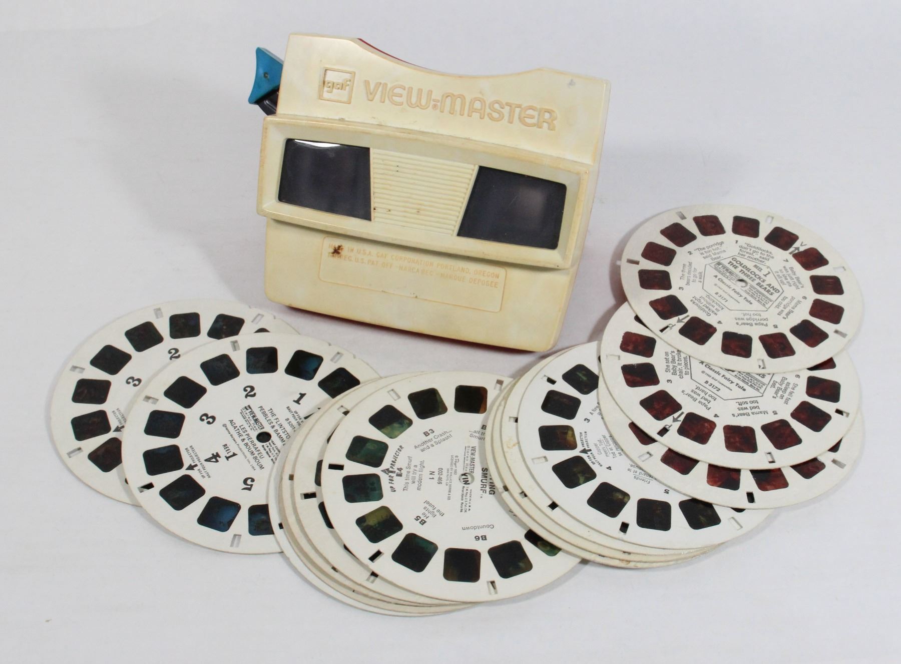 IN WORKING CONDITION , INCLUDES VIEW-MASTER MACHINE, DISNEY REELS SNOW WHITE FOX AND THE HOUND GOLDILOCKS AND THE THREE BEARS, FLYING SMURF THE FLINTSTONES