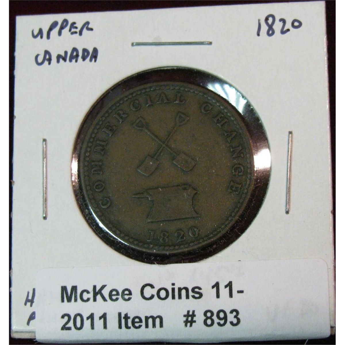 893. 1820 Bank of Upper Canada Half-Penny Token. VF. Catalog $45.00