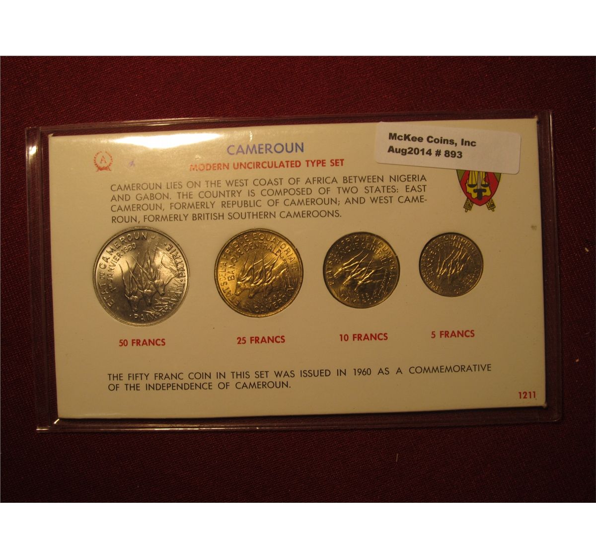 893. Cameroun Modern Uncirculated Type Set, 4 coin set, coins are dated 1960-1965, 50 Franc coin is a high catalogue value coin