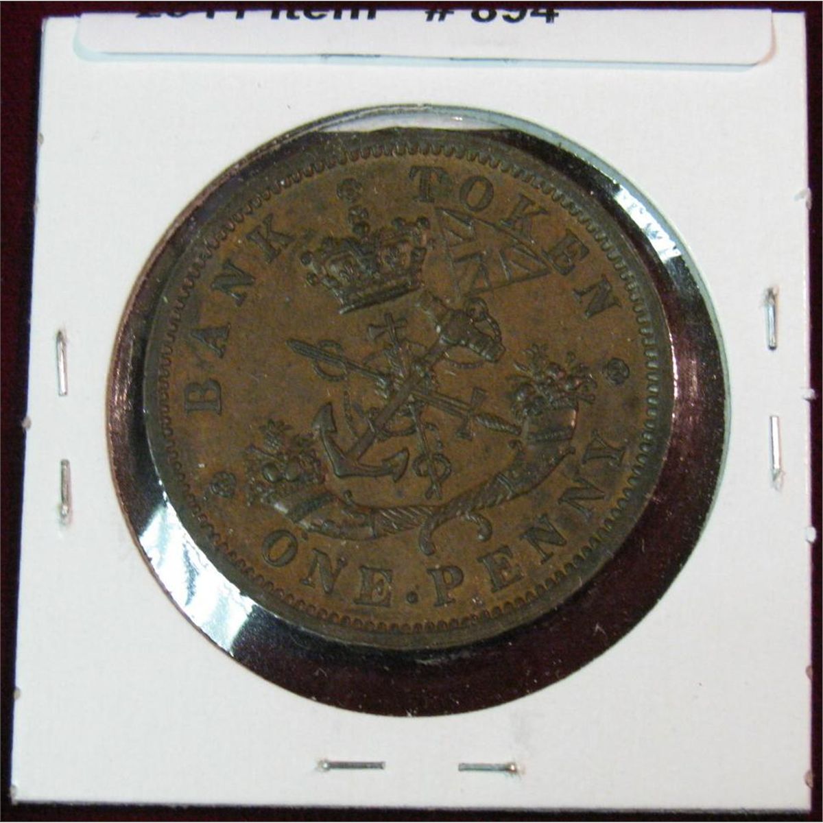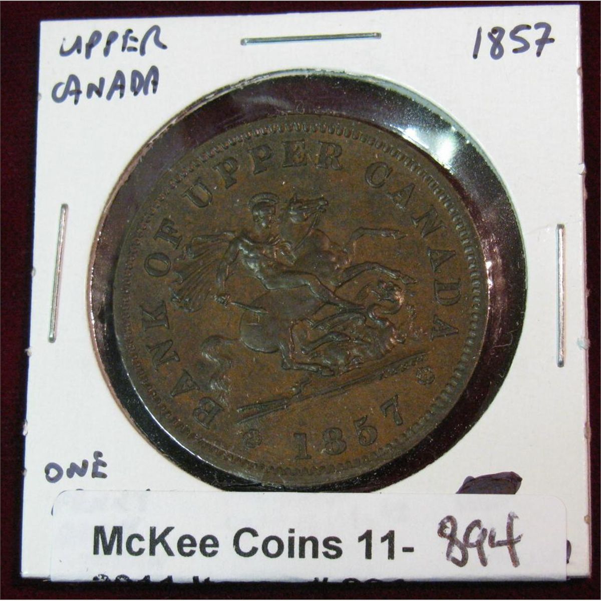 894. 1857 Bank of Upper Canada Penny Token. Br. Unc. Catalog $140.00
