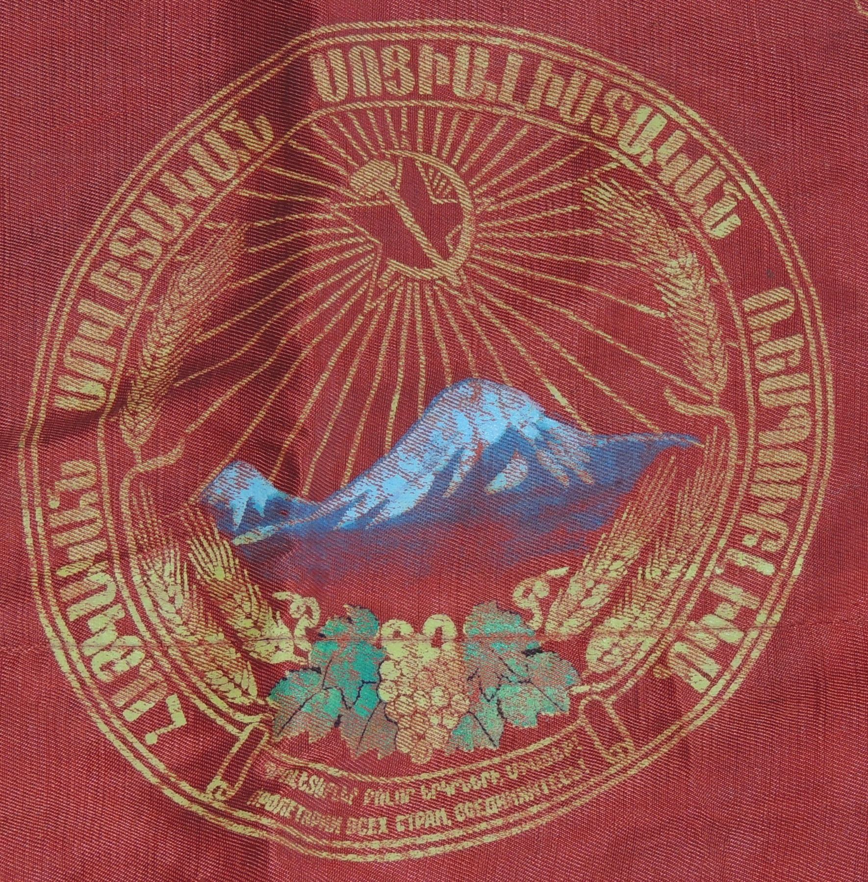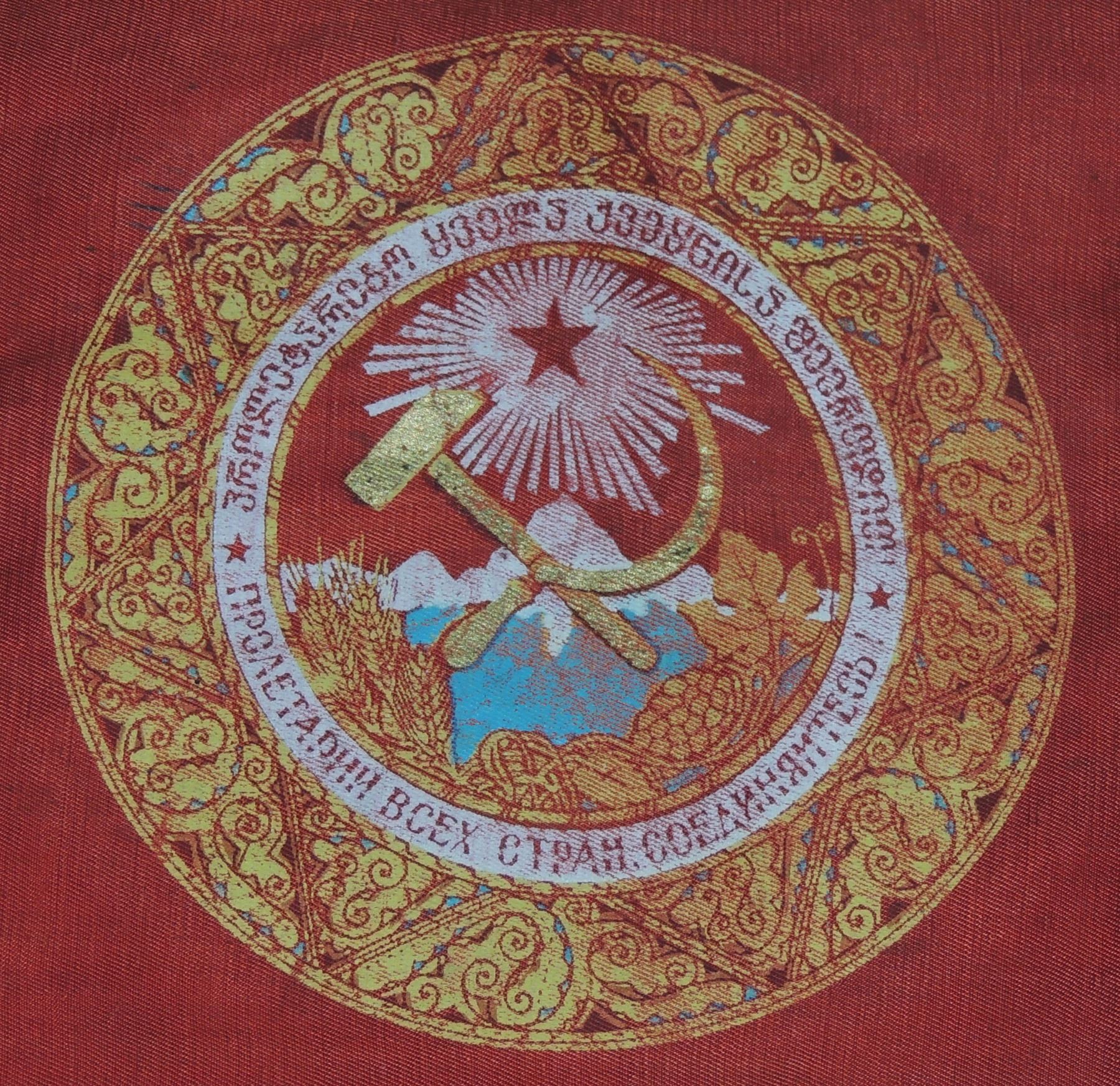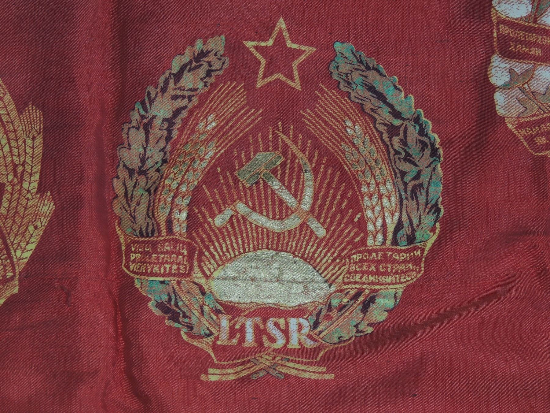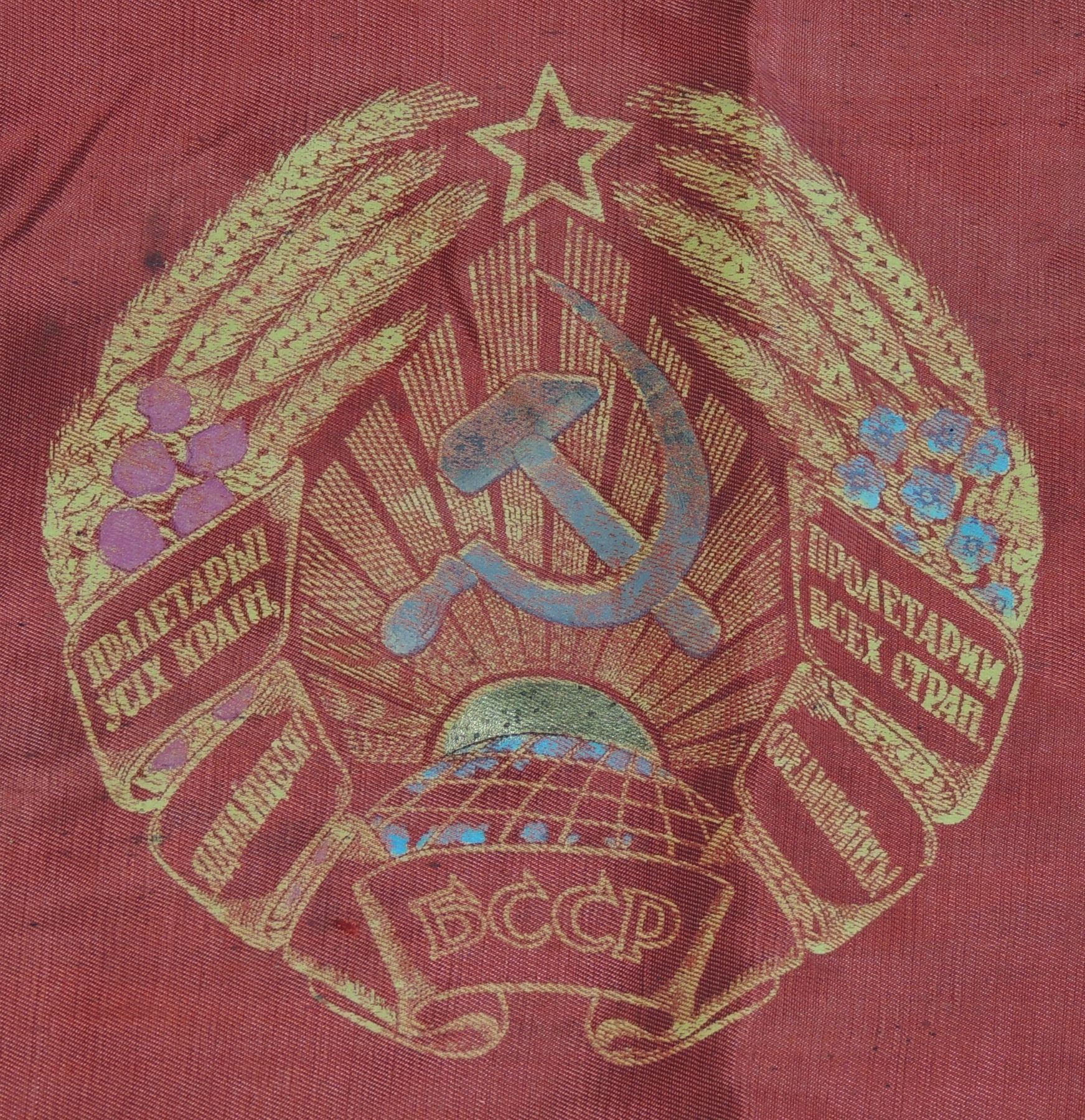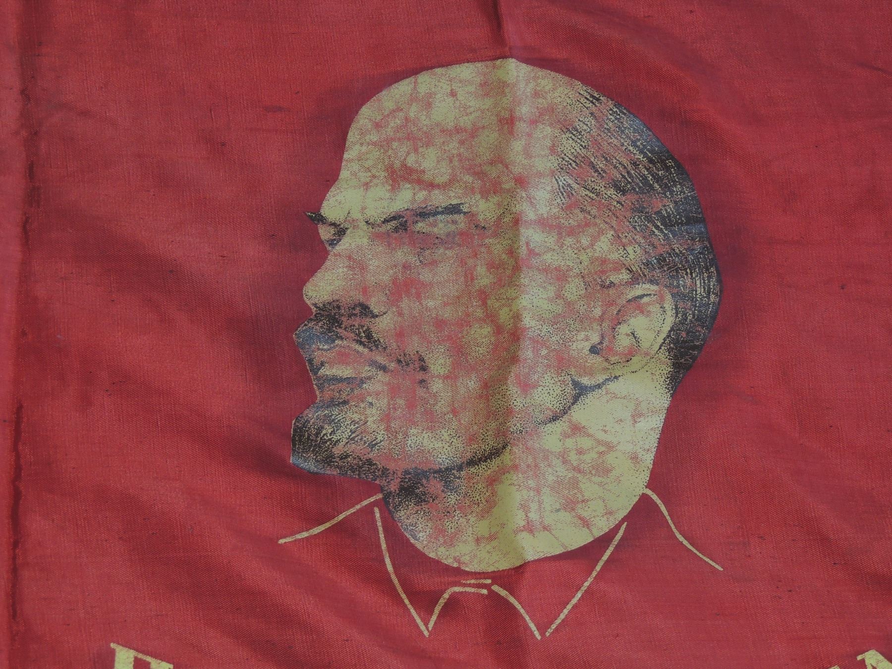 66X44 INCHES IN SIZE LARGE BANNER DOUBLE SIDED WITH SOVIET STATES HAS WEAR COLD WAR ERA COMMUNIST RUSSIAN FLAG