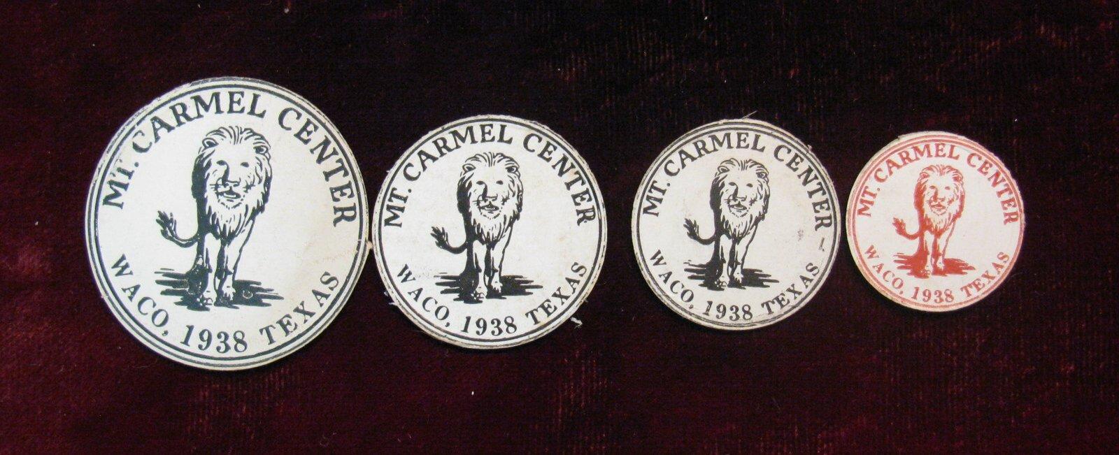 895. 1938 Waco Texas (4) Branch Davidian Cardboard Tokens.