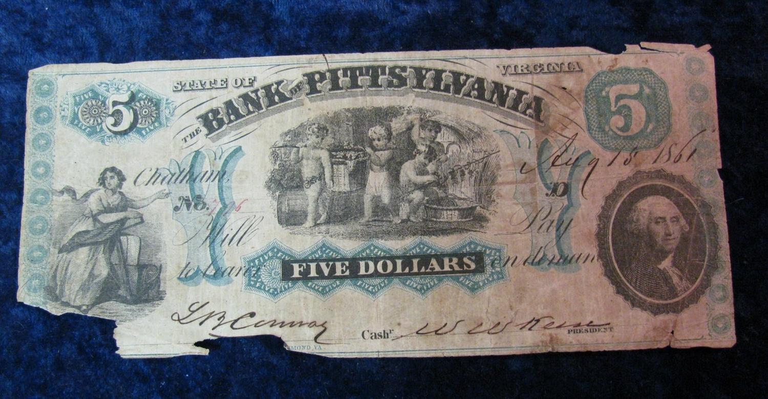 895. Aug.18, 1861 Bank of Pennsylvania strate of Virginia 5-Dollars.