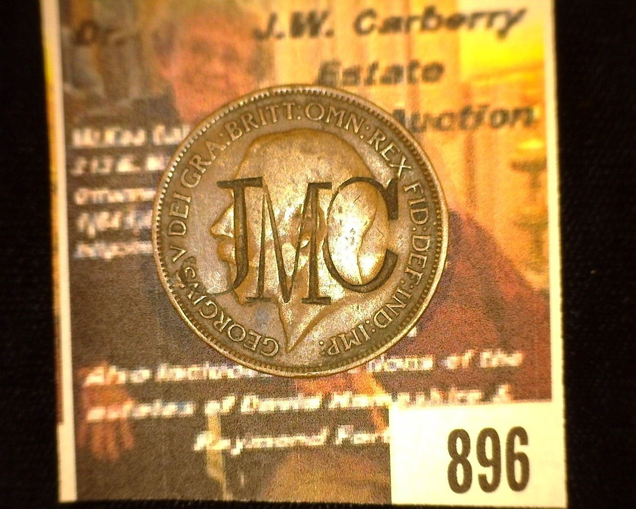 896.1915 Great Britain Half Penny Counterstamp "JMC".