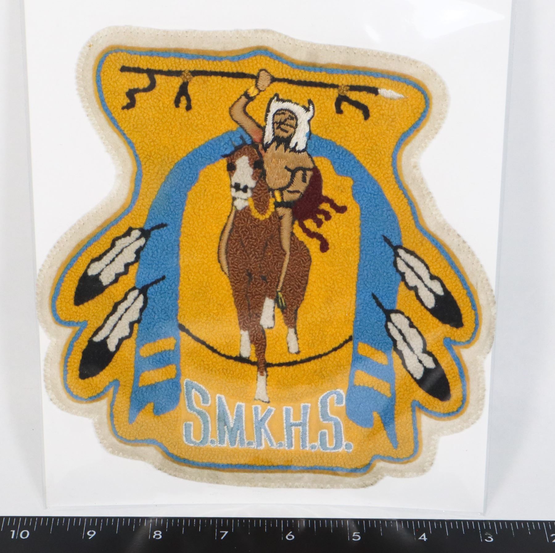 1960'S VINTAGE HIGH SCHOOL PATCH CREST FIRST NATIONS NATIVE CHIEF ABORIGINAL DESIGN POSSIBLY ST. MAXIMILIAN KOLBE CATHOLIC HIGH SCHOOL